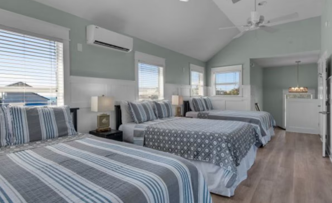Welcome to Cobia Cabana, a spacious cottage-style getaway just a short walk from the sugar-white sands of Destin. Perfect for families and groups, this beautifully designed property features a main house and a private cabana house, offering a total of 6 bedrooms and 5.5 bathrooms. Enjoy ocean views from multiple balconies, a private pool (heating available for an additional fee), and plenty of outdoor space with brick-paved lounging areas and a natural gas grill for al fresco dining. Inside, the chef’s kitchen is fully equipped with an extra-large refrigerator and all the essentials to prepare family meals. On the 1st floor, you’ll find a comfortable queen bedroom complete with a flat-screen TV and DVD player. Moving up to the 2nd floor, the master suite features a king bed, an ocean-view balcony, and twin sleeper chairs; alongside it is a second king bedroom with its own private balcony, and a bunk room furnished with full-over-full beds and linked via a Jack-and-Jill bathroom. The 3rd floor offers a spacious retreat with three queen beds, two sofas, and a large TV — ideal for movie nights. In the separate Cabana House, you’ll enjoy a living room, kitchenette, a king bed, and a queen sleeper sofa for added flexibility. Whether you’re sipping morning coffee with a Gulf view or relaxing by the pool while the kids splash around, Cobia Cabana is your ideal home base for making unforgettable beach memories in Destin.