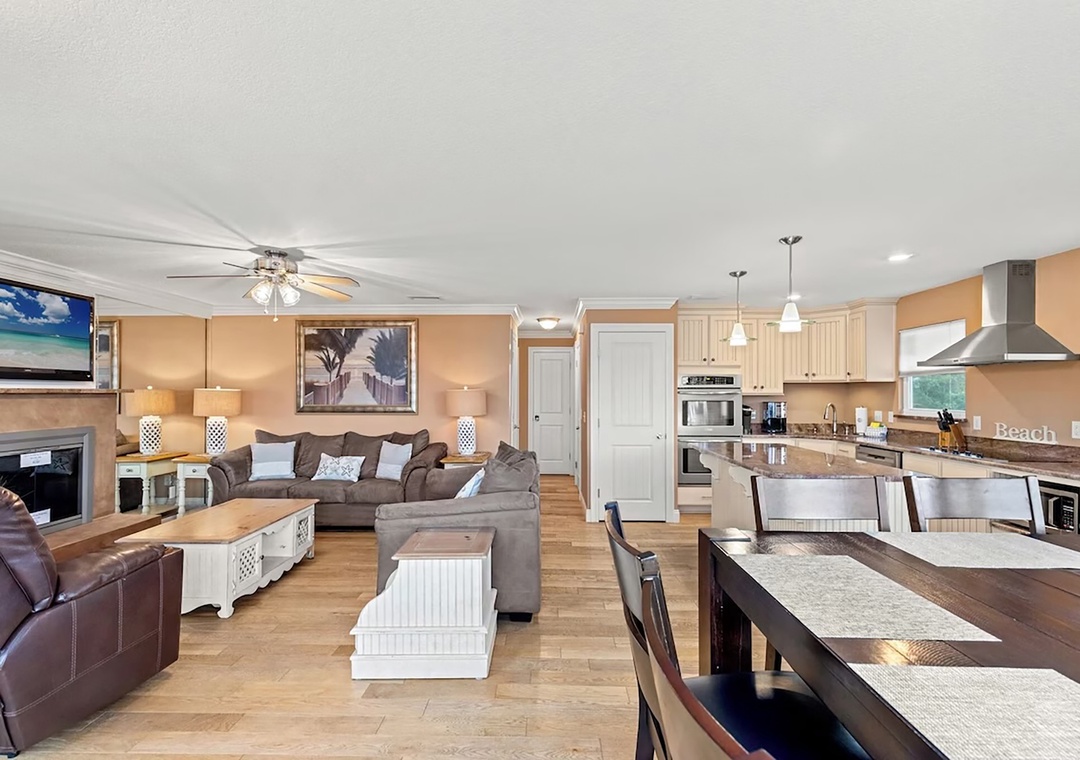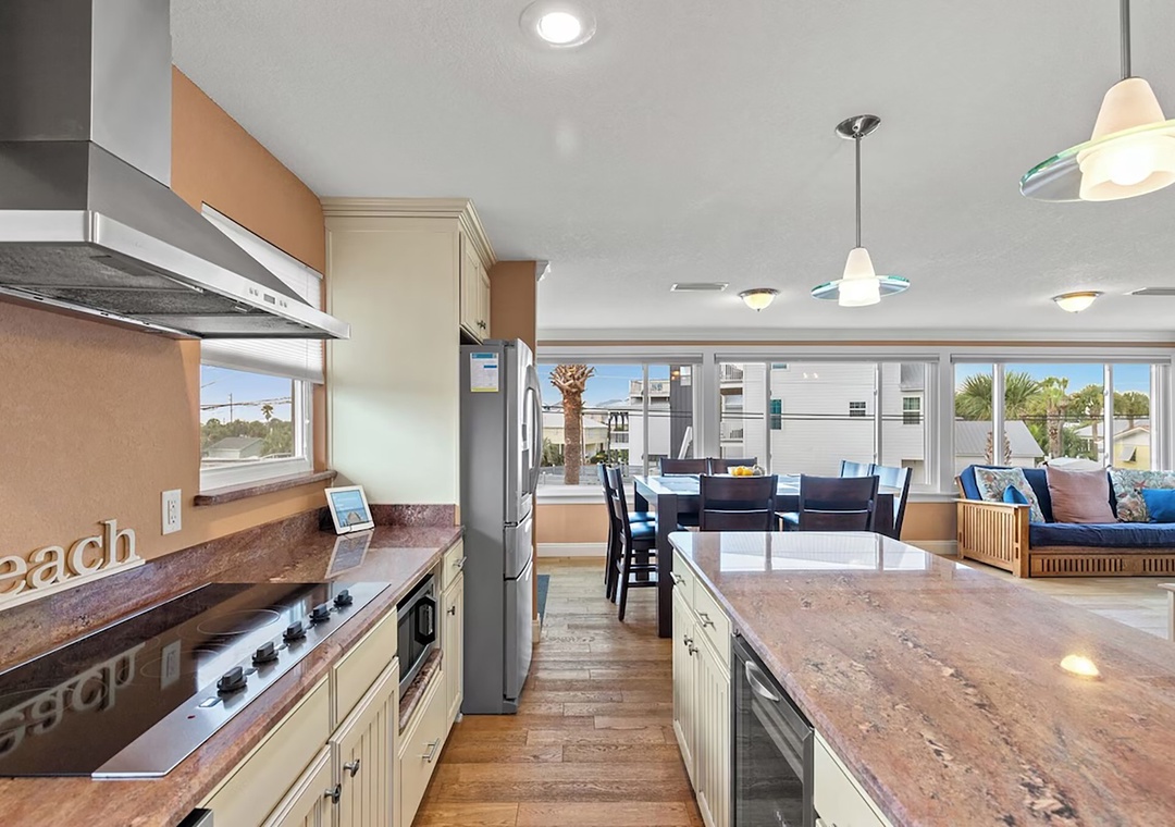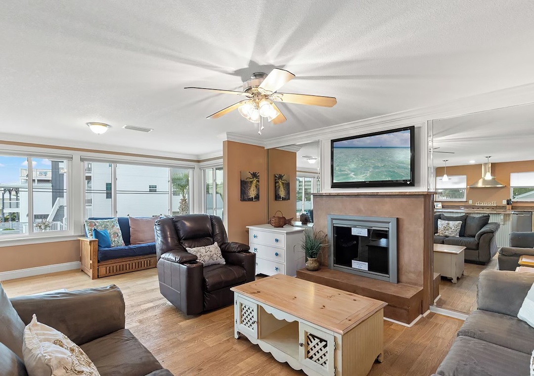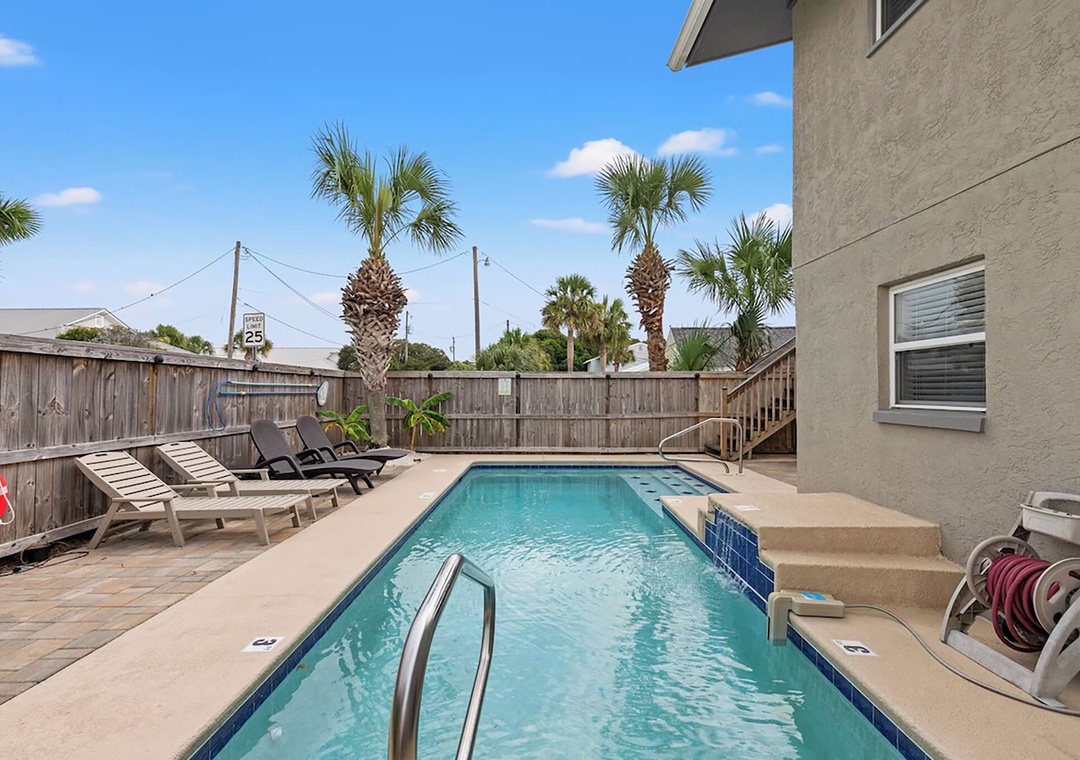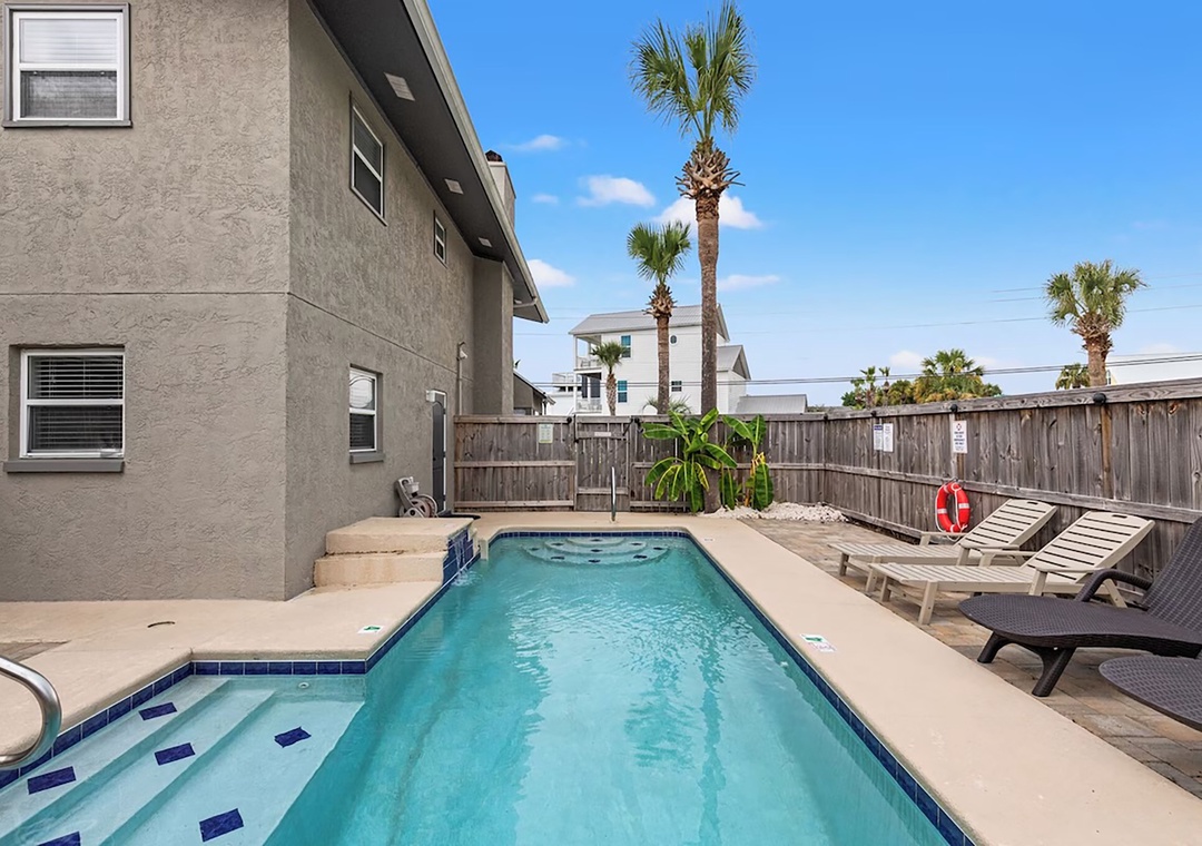 Welcome to Coconut Breeze your perfect beachside retreat tucked away on the quiet, family-friendly west end of the beach. This spacious 4-bedroom, 2-bathroom home is designed for comfort and connection, featuring two living areas and two fully equipped kitchens—ideal for larger families or groups traveling together. Start your mornings with coffee on the back porch, spend your afternoons lounging by the private pool, and gather in the evenings for meals on the on porch or around the outdoor kitchen and gas grill. The thoughtfully arranged sleeping accommodations include a first-floor queen guest bedroom and an additional guest room with two queen beds, while the second floor offers a king master suite and a guest room with a queen bed plus twin-over-twin bunk beds, comfortably hosting up to 10 guests. Whether you’re relaxing poolside or sharing meals under the coastal breeze, Coconut Breeze is the perfect place to create unforgettable beach memories.