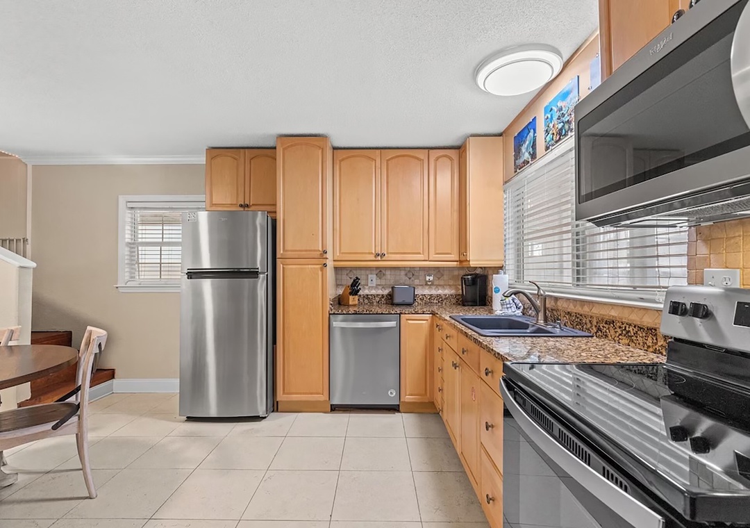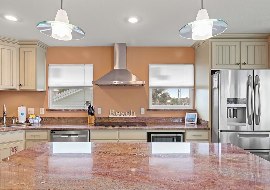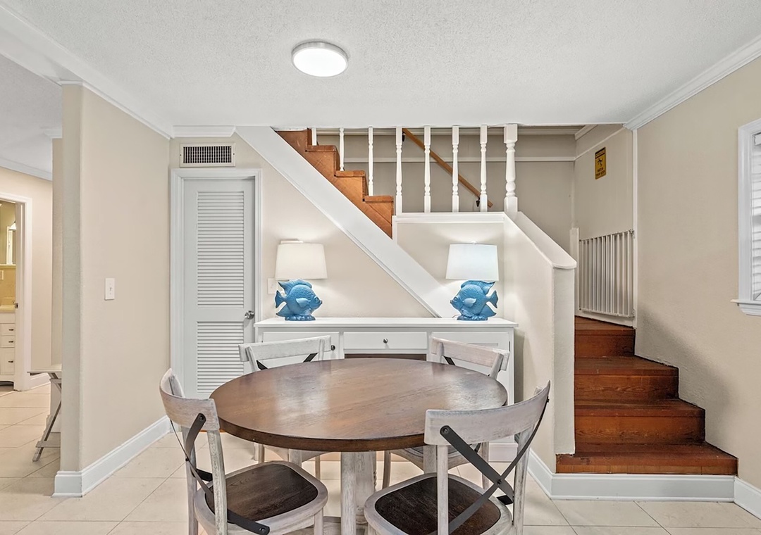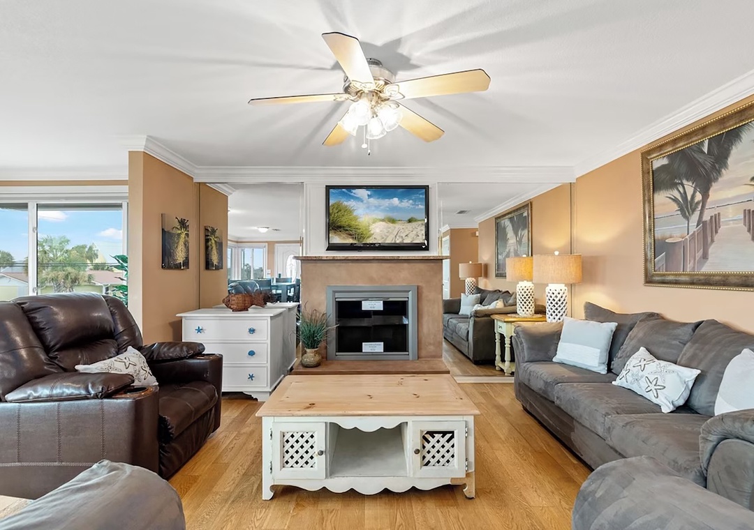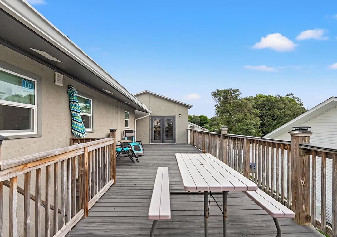 Welcome to Coconut Breeze your perfect beachside retreat tucked away on the quiet, family-friendly west end of the beach. This spacious 4-bedroom, 2-bathroom home is designed for comfort and connection, featuring two living areas and two fully equipped kitchens—ideal for larger families or groups traveling together. Start your mornings with coffee on the back porch, spend your afternoons lounging by the private pool, and gather in the evenings for meals on the on porch or around the outdoor kitchen and gas grill. The thoughtfully arranged sleeping accommodations include a first-floor queen guest bedroom and an additional guest room with two queen beds, while the second floor offers a king master suite and a guest room with a queen bed plus twin-over-twin bunk beds, comfortably hosting up to 10 guests. Whether you’re relaxing poolside or sharing meals under the coastal breeze, Coconut Breeze is the perfect place to create unforgettable beach memories.