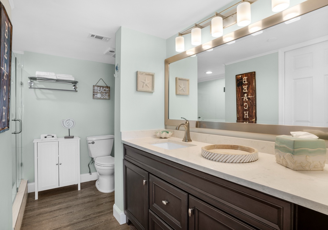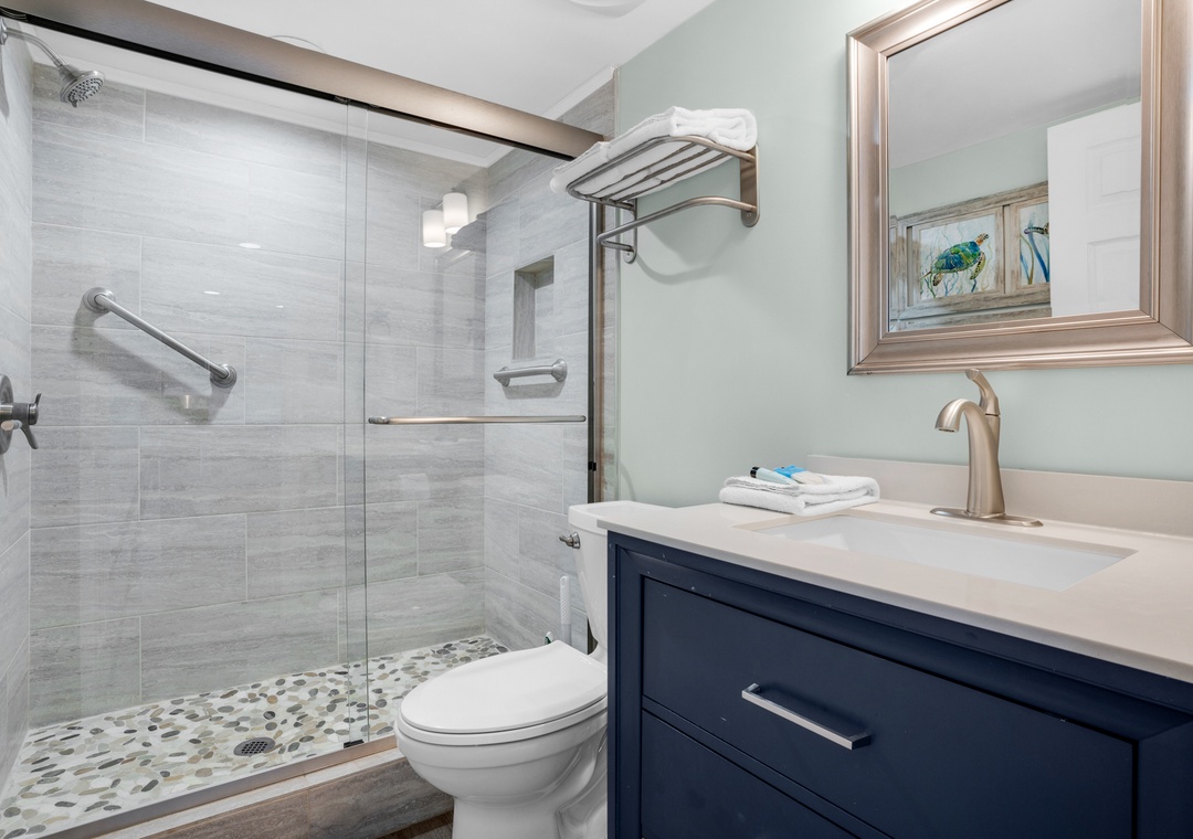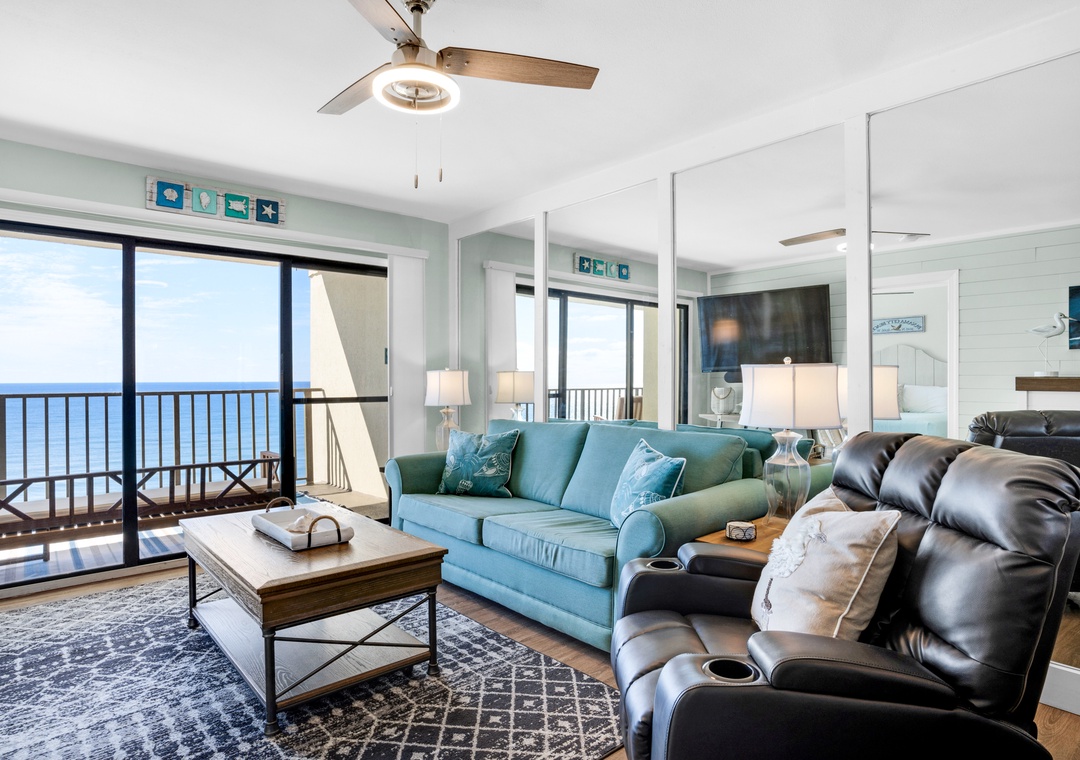 We loved this place. Absolutely perfect for me and my boyfriend. The best view of the ocean from the top floor w/ a huge balcony w/ access from the bedroom and the living area. The bathrooms (and the rest of the place) were super clean, none of that weird uncleanable dirt in the grout like a lot of places have. Kitchen equipped with everything you could need (if you like to cook make sure to bring your basic spices). The only complaints were that the thermostat is programmed somehow to change to 74 when you leave somehow so it's a little warmer than we liked when we'd get back from places but not too bad. We also could not get the living room TV to connect to the DirectTV box. This condo was so amazing and close to everything. Beautiful beach, awesome food and fun atmosphere as always from PCP. We will definitely be back.- Reviewed On: 8/14/2023