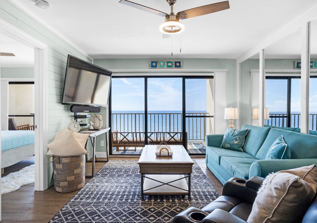 Whitney, we appreciate you taking the time to provide us with some feedback regarding your rental experience. We are happy to know that you loved this amazing, well-located one-bedroom, two-bath unit, finding it to be super clean with a well-equipped kitchen and the best ocean view. Please accept our apology for the issue related to the living room TV not working properly. Thank you for choosing RealJoy. Please visit again soon.Real Joy staff
