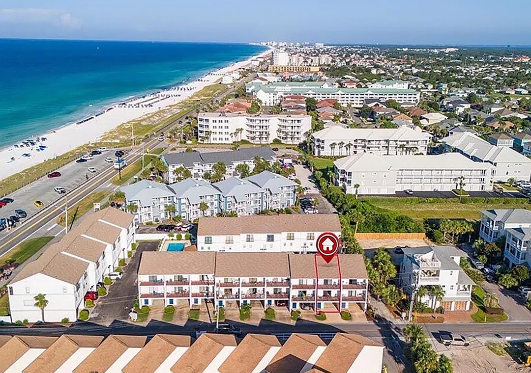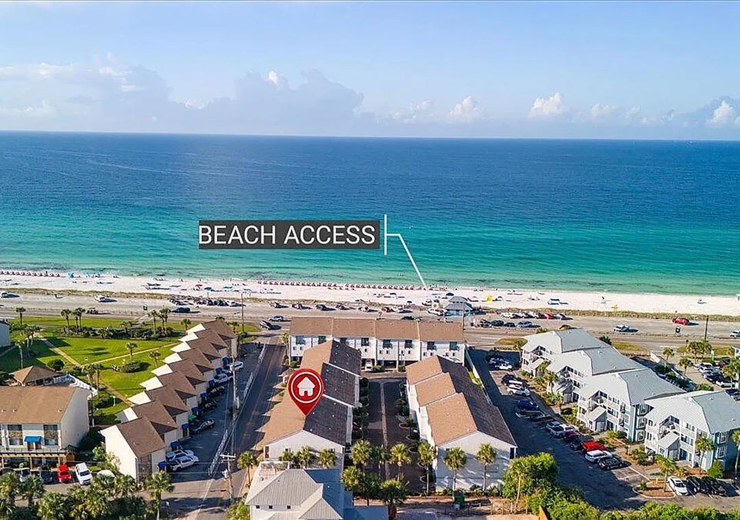 Welcome to Costa Vista Townhouse #2, ideally located just across the street from the beach! This spacious coastal retreat features 2 bedrooms, 2.5 bathrooms, and comfortably accommodates up to 7 guests. The third floor offers two private bedrooms: a primary suite with a King bed and a guest bedroom with a Queen bed and a Twin bed. The second floor is the heart of the home, featuring an open-concept living area with a sleeper sofa, a fully equipped kitchen, and a cozy dining space—perfect for preparing and enjoying family meals together. Step outside to one of the two private balconies to savor your morning coffee or unwind in the evening breeze. Additional conveniences include an in-unit washer and dryer. You will find a covered carport on the first floor. Just steps away, you’ll find the sugar-white sands of Miramar Beach and the popular Pompano Joe’s, a Gulf-side restaurant and bar loved by locals and visitors alike. Guests also have access to the community pool, adding even more relaxation to your stay. Come see why Costa Vista Townhouse #2 is a favorite destination for families and beach lovers alike!