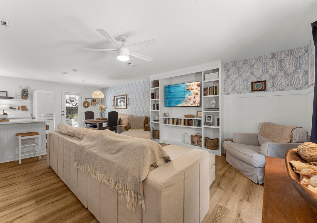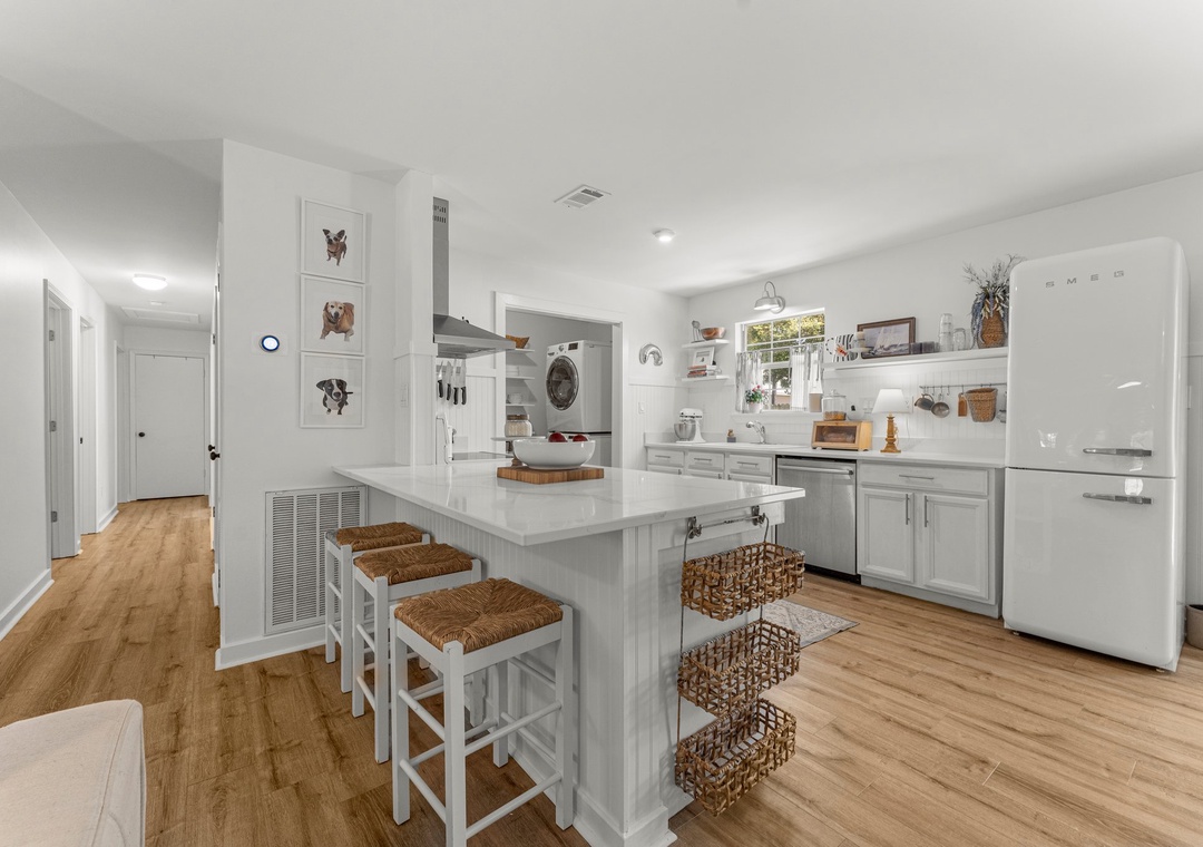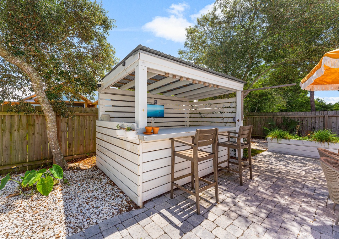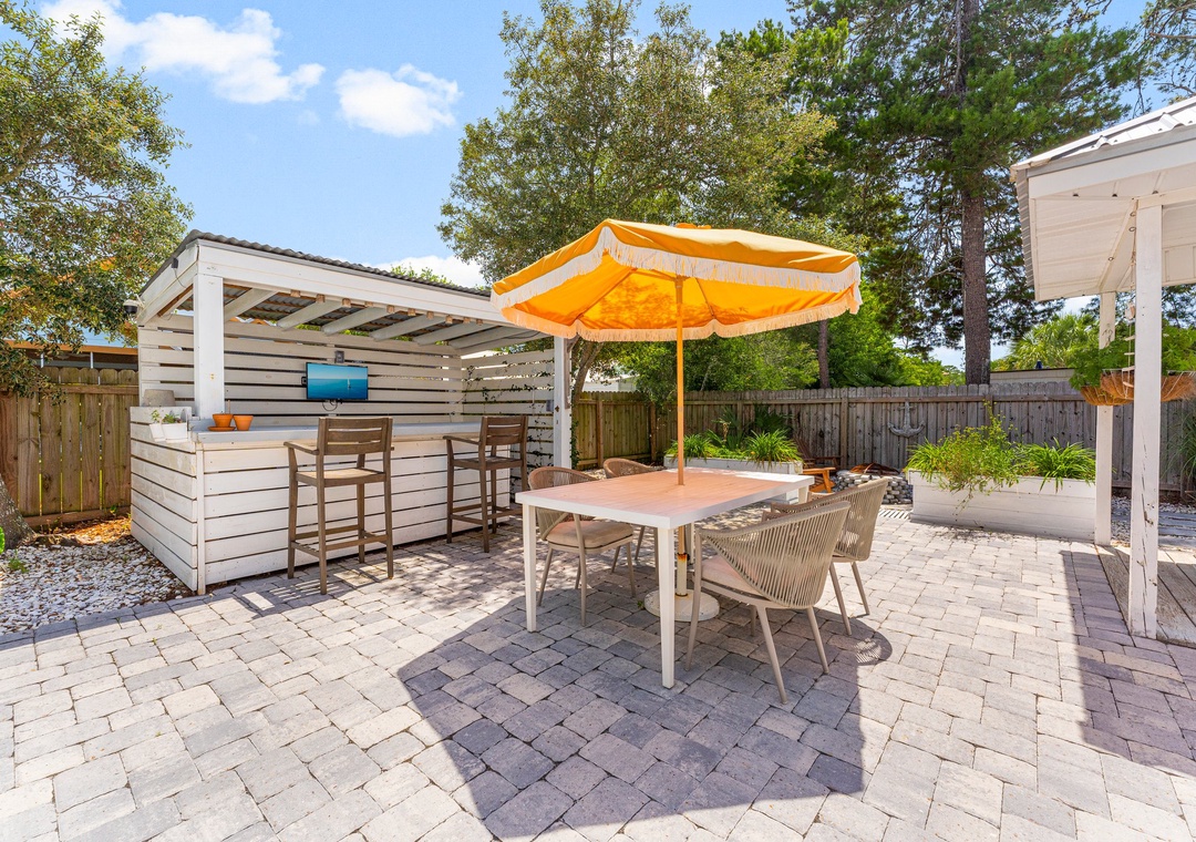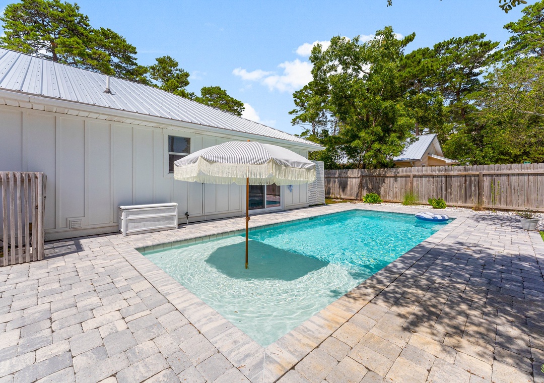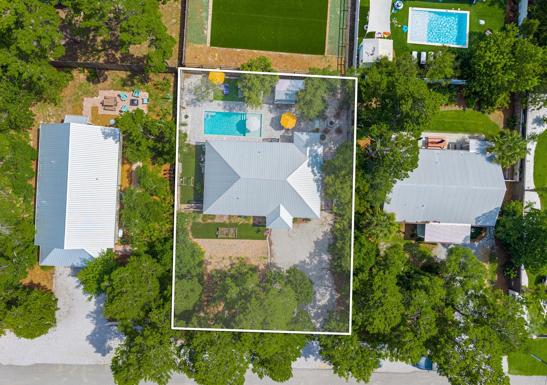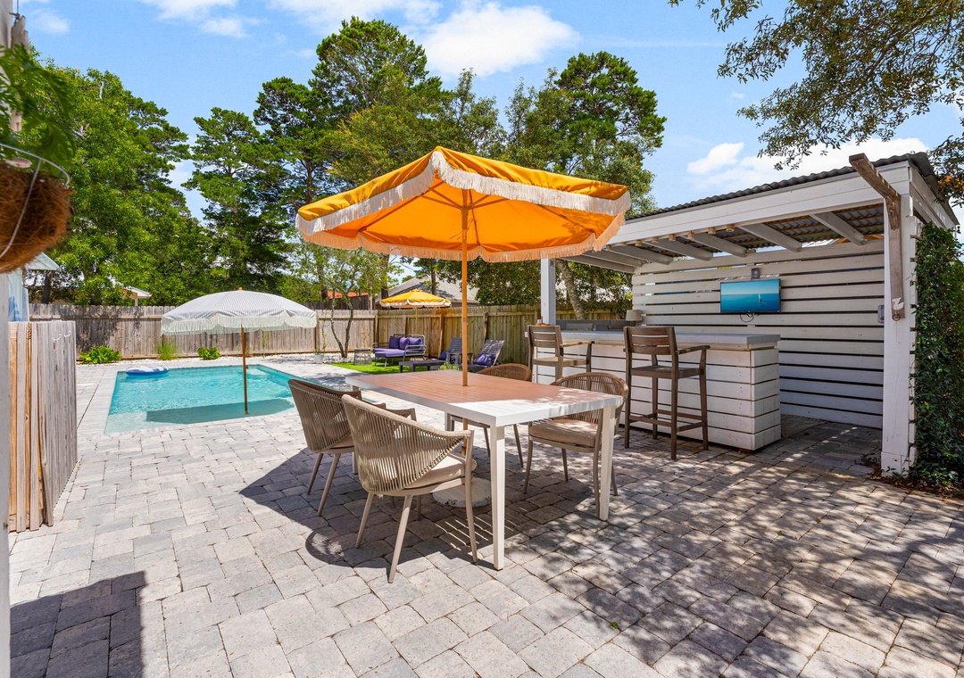 Welcome to Cottage Haven — a charming 3-bedroom, 2-bathroom retreat just a few blocks from the sought after 30A corridor. Surrounded by mature trees and a laid-back atmosphere, this open-concept home offers comfort, style, and convenience. The fully equipped kitchen has everything you need to prepare delicious meals for family and friends. The sleeping arrangements include a spacious king master suite, a cozy queen guest room, and a twin daybed in the third bedroom comfortably accommodating up to 5 guests. Step outside to your private oasis: a beautifully fenced backyard featuring a sparkling pool, firepit with cozy seating, and an outdoor bar perfect for enjoying lunch or evening cocktails. Whether you're cooling off after the beach or winding down under the stars, this space is made for relaxation. Take a leisurely bike ride or walk to the nearby beach and experience the best of 30A living. Discover why Cottage Haven is the vacation home you’ll want to return to again and again.