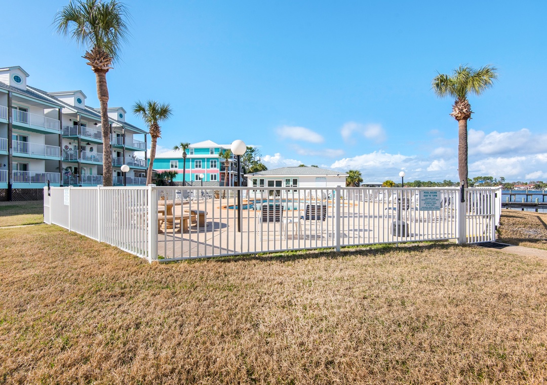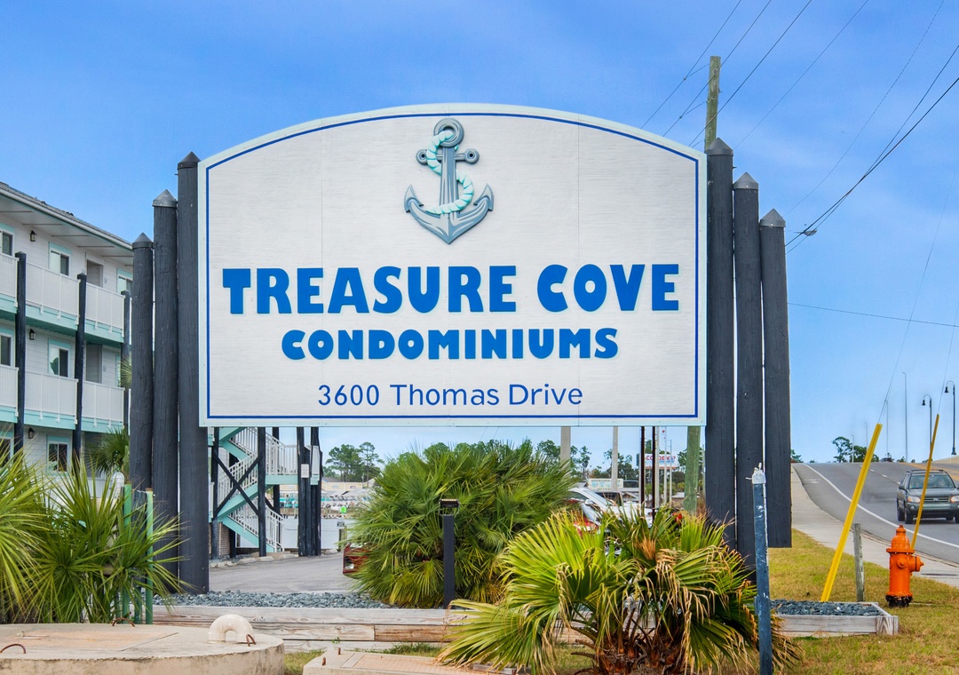 Treasure Cove is located on Thomas Drive right at the Grand Lagoon Bridge and across from the Pirates Cove Marina, seafood market, pontoon, jet ski, and charter boat rentals. There is a large community swimming pool available and is also walking distance to the beach and great restaurants such as Capt. Andersons and J Michaels. St Andrews State Park is a half mile away. There is a large parking area or boat storage facilities are close by. The private dock is perfect if you have your own boat, or if you plan to rent jet skis nearby. Weather permitting, these can be docked here during your stay. 2 Parking passes will be left in the unit and MUST be left in the condo on the kitchen counter when you depart, or you will be charged $50 to replace them. No wristbands are needed for your rental. No trailers or boats are allowed to park if guests staying less than 30 days.