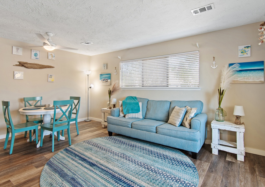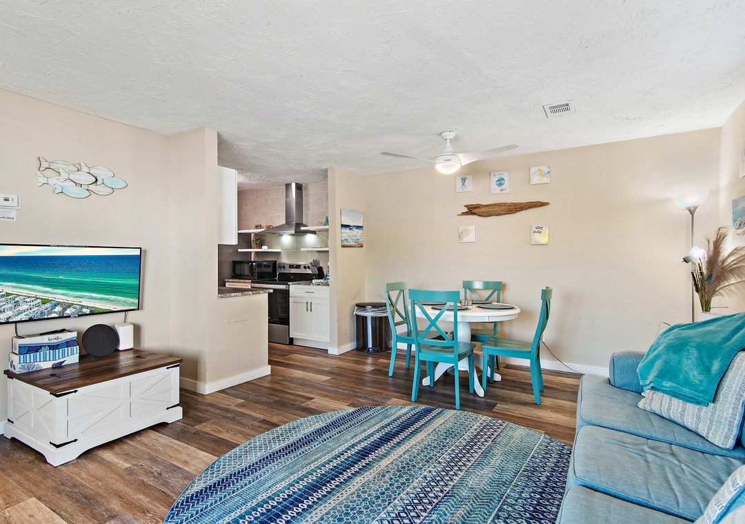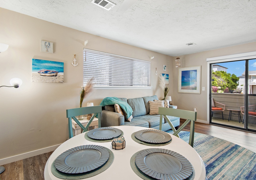 Welcome to Cross Creek 29D, a charming 1-bedroom, 1-bathroom retreat designed for comfort and convenience. Step inside to a bright and open living and dining area featuring stylish tile and LVP flooring that’s both attractive and easy to maintain. The fully equipped kitchen offers sleek stainless steel appliances, perfect for preparing meals after a day of exploring. The spacious bedroom features a cozy queen bed, while the living room includes a queen sleeper sofa to comfortably accommodate additional guests. Enjoy the ease of an in-unit washer and dryer, along with the convenience of parking right outside your door. Start your mornings with coffee or unwind in the evening on the covered patio just outside. Take advantage of the community pool and relaxed surroundings—Cross Creek 29D is the perfect place to start making lasting memories.