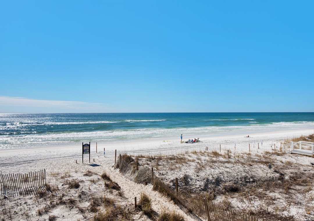 Beautiful view, right in front of Barracuda public beach access, on both sides of the home are private beach areas. There is a company that sets up chairs and umbrellas. They said we got two chairs and an umbrella since staying in townhouse. Great size townhouse, 3 masters, a bunk room that has 8 twin beds and a pull out couch. It is important to bring any essentials if you plan on cooking, (salt, pepper, oil, coffee filters) We didn’t go out to eat but there were so many places that looked wonderful to eat and easy access to. The beach was pristine, the views from the balconies where out of this world.- Reviewed On: 3/23/2023