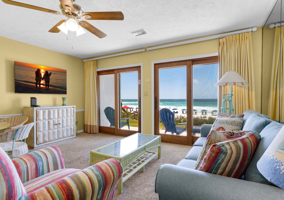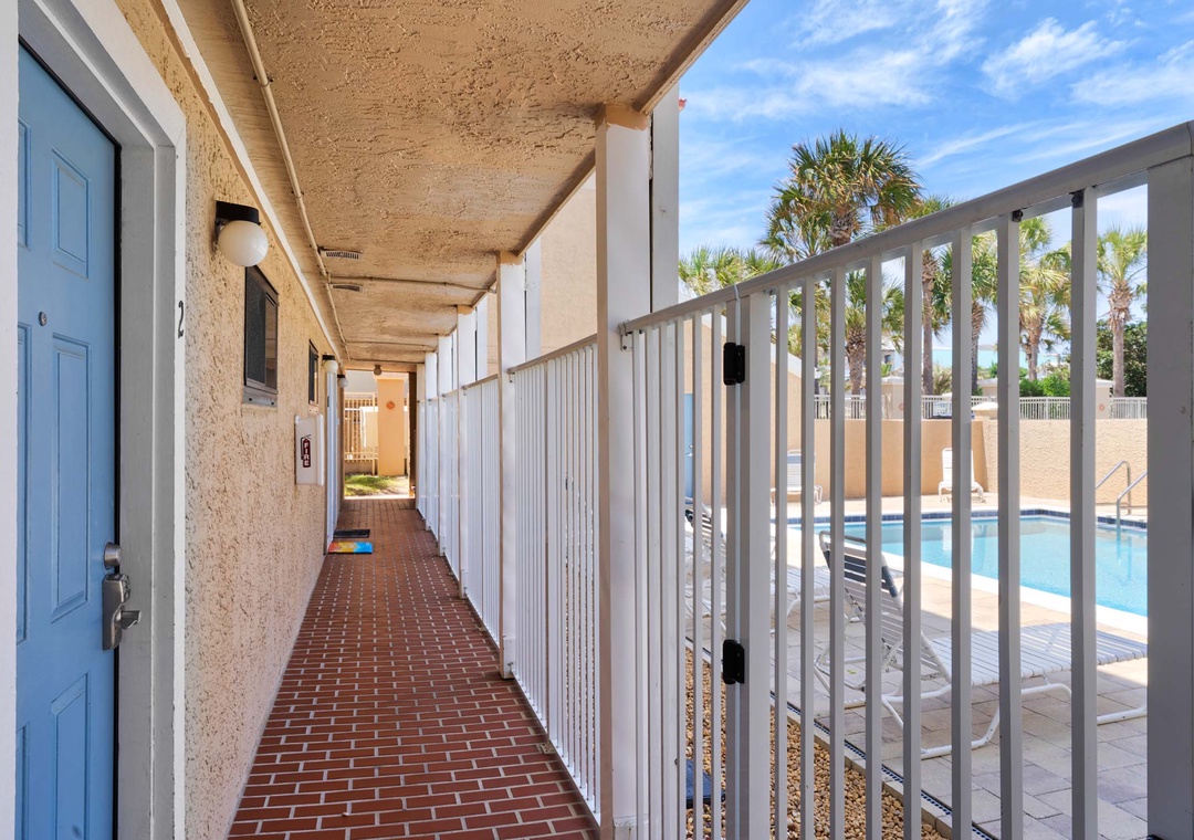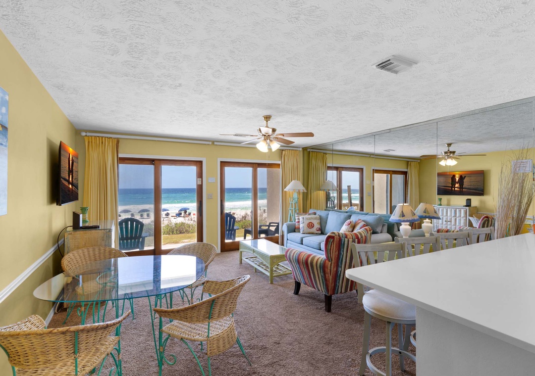 Walk straight out the back door and right out to the beach. Very convenient. Condo is near pool. Other guests did not observe pool hours or control their volume. Condo decor was dated but we were there for the beach. We’ve stayed in Crystal Villas over past 20 years. Great place & location.- Reviewed On: 8/4/2024