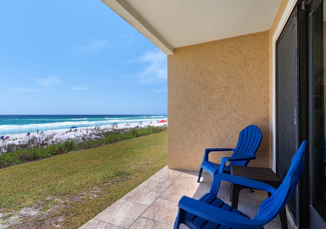 The panoramic gulf views are incredible from this first floor condo! This unit is so close to the beach that you can sit on your patio and talk to your family while they are on the beach getting a tan. Just outside your front door you can watch the kids swim and play in the pool. Crystal Villas is a Smoke Free complex. No Smoking, tobacco, or vapes on property, including the beach and balconies.