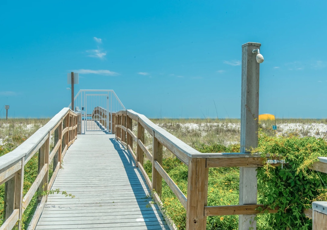 Walk the private boardwalk to beach. Enjoyed having beach service with umbrellas and chairs. Very clean and homey condo. We used Uber to go into town.- Reviewed On: 4/21/2023