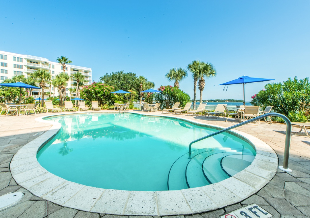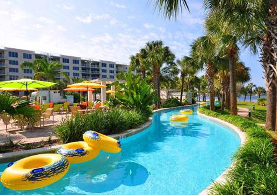 At Destin West Heron you can enjoy extreme water fun in the 5000 square foot pool with a kiddie area, a 700 foot Lazy River, heated pool with waterfall, or one of two hot tubs. The Heron building boasts its own bayside pool that is heated year round! Enjoy your view of the Choctawhatchee Bay, while the kids enjoy the lazy river. Cross over the sky bridge to the Gulf beaches without worrying about traffic. Charcoal grills and picnic tables on both the bayside and beachside make grilling out inviting and fun. As a guest at Destin West, you can enjoy access to the pools, bars, and restaurants located at the The Island Beach Resort at Destin West beachside.