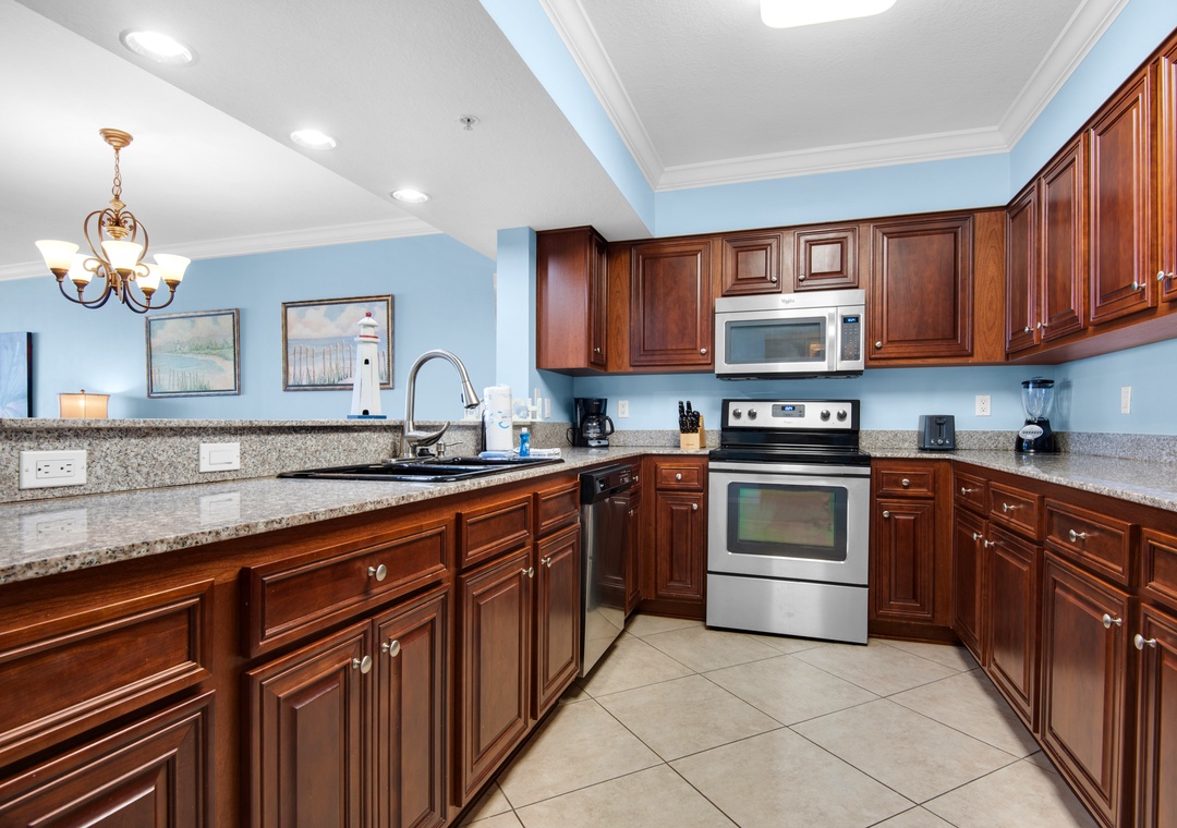Mary, thank you for your 5-star review! We're pleased to hear that you enjoyed the layout of the condo and found the kitchen well-equipped for your needs. It's great that the views from the master, living room, and deck added to your experience, along with the spacious deck for your group. We're glad you had comfortable beds and appreciated the easy access to both the beach and bayside. We look forward to welcoming you back to RealJoy for your next stay!Real Joy staff