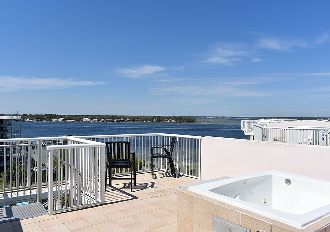 Welcome to Sandpiper PH01, which overlooks the Choctawhatchee Bay and the Gulf of Mexico! This is a spacious penthouse 1BR/2BA condo at the complex within Destin West Beach and Bay Resort with a charming vintage musical theme. The unit features a king bed in the master bedroom with an ensuite bathroom, a bonus bunk nook with a twin over a twin bunk bed, and a living room sleeper sofa to comfortably sleep up to 6 guests. For your convenience, there is a washer and dryer in the unit. Take a relaxing soak in the jetted tub on the rooftop balcony while enjoying the beautiful surrounding views of the gulf and the bay. When you're not enjoying a day at the beach, relax by the 5000 sq ft lazy river pool. Come see why Destin West Bayside Sandpiper #PH01 is a vacation favorite.