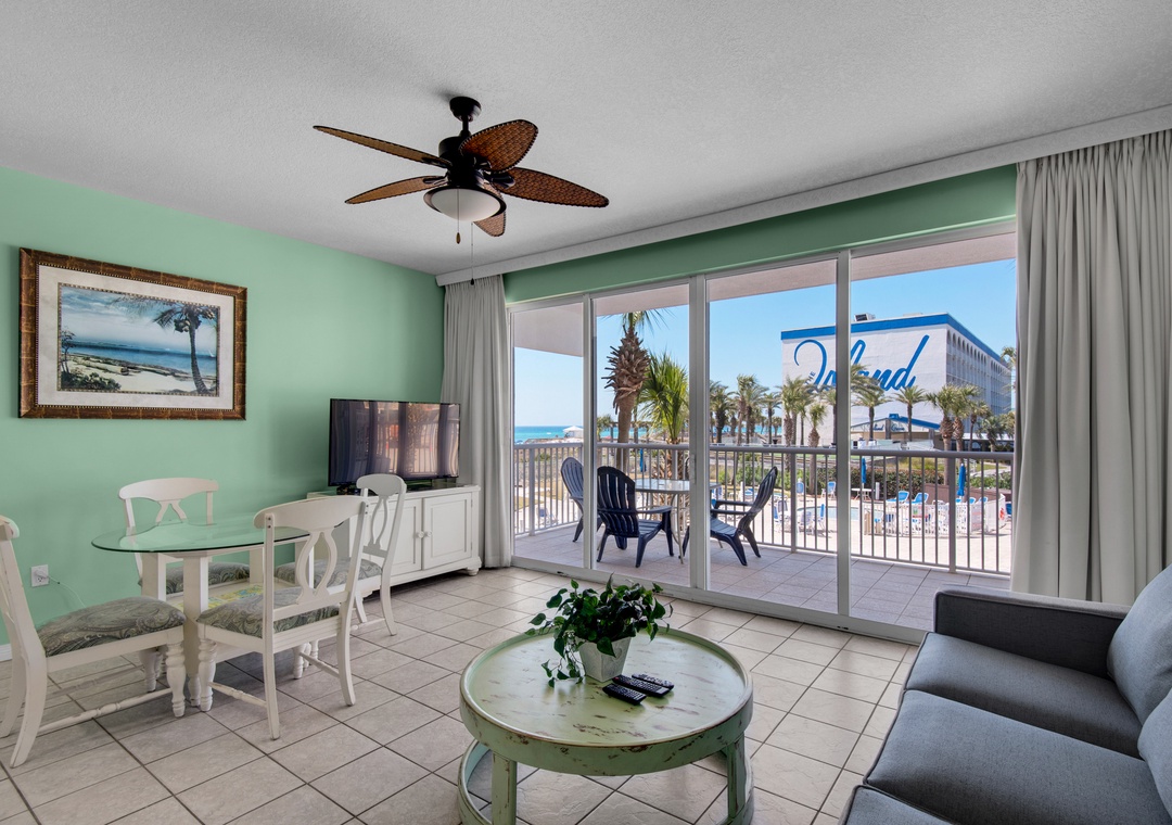 The room was nice and the patio view of the pool was great. The pools are all kept clean and light up really pretty at night. Also it was right next to the Island resort which was nice to walk to and enjoy their beach bar and food huts. The grounds were very well kept at Destin West. The palm trees blocked the view of the ocean from our balcony. No music playing like most resorts have. No activities for kids or families such as s'more night, music, movie night on the beach etc. But you can walk to the Island and use their amenities. They are getting strict with using their pool though.- Reviewed On: 7/15/2024
