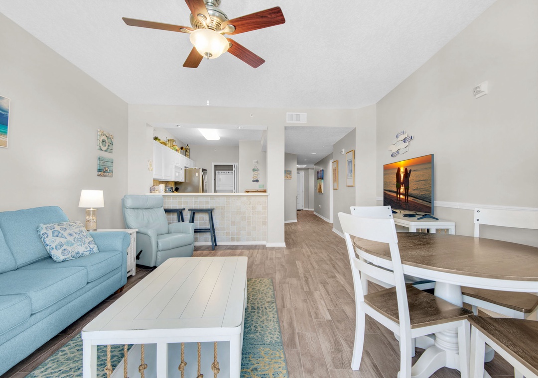 The space was set up very nicely and felt cozy yet we were not crowded. Being able to use the pools at both locations was wonderful! The property management was extremely polite, helpful, and fast acting. They checked in very often & made us feel like they truly cared about our experience. The condo is nicely decorated, had the kitchen items we needed, & felt comfortable. The full size refrigerator was very helpful having a large family. The breakfast table & bar stools were adequate along with the patio set. I appreciated the hangers in the guest closet. The pillows were great quality & comfort. Simple things like the nightlights & touch lamp were greatly appreciated! The washer/dryer was a great size & convenient. (The washer softener dispenser needs a good cleaning) I was grateful for the broom being in an accessible closet so I could keep the floors mess free. -For future guests I'd suggest a map of the grounds with directions to the pedestrian bridge, beach, etc. The signs were good, but a map would really help some. -the master bedroom cable box was inoperable due to payment or something. The staff tried to handle the situation in a timely matter, but it did not get sorted within our stay. The property management company was phenomenal. -the sofa bed was missing all the spring attachments at the head causing me to fall & injuring my arm & shoulder. My children had to sleep across in order to safely use the bed. -the sliding doors were extremely difficult to lock -the refrigerator was hard to open and would move out of its spot when trying to open the door. -there were items and a tv on the floor in the guest bedroom closet so we weren't able to put our stuff in there to keep the area clear. There was also some items in a corner in the master bedroom. I put stuff around it just to be sure no kids were able to mess with it. -the guest bathroom sink was clogged and extremely slow to drain -the floors were dirty despite looking clean. Our feet & socks were black from the dirt so we wore shoes inside. -just FYI: the vanity lights in the master bathroom flicker a lot *nothing that would truly cause us not to be back though! Possibly the sofa bed only because it's a safety issue with my children. -Check in: It would have been helpful to have instructions on where to park & how to get to the room. Perhaps mention the stairs from the parking garage. We had a lot to bring in & would've liked to use a cart, but was unable to. We did enjoy the condo & amenities despite the issues. Again...not super major issues that would cause me to not return as it did not fully hinder our stay just giving feedback that would hopefully be taken into consideration to be addressed!- Reviewed On: 9/30/2024