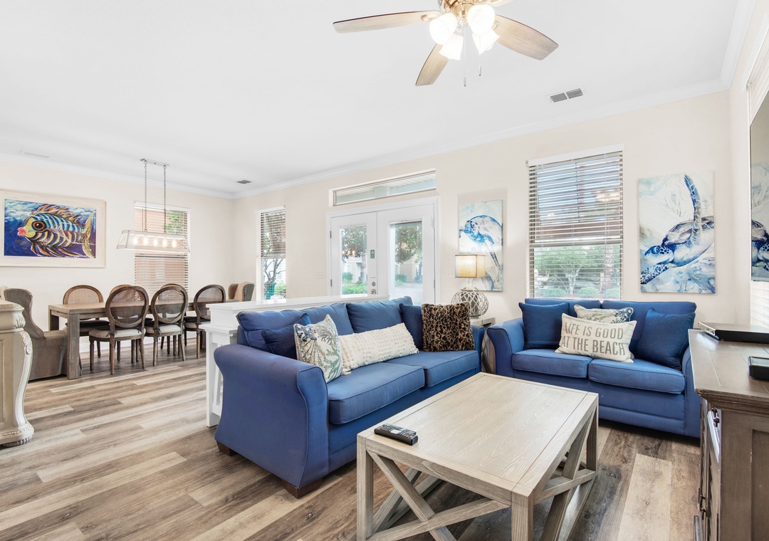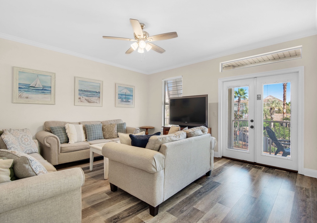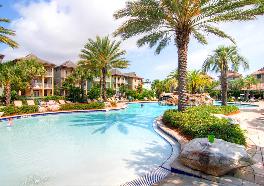 Villages of Crystal Beach is an exclusive, gated community only a few blocks from the beautiful blue waters and white sandy beaches of Destin. You can make the walk on foot or hop on the free seasonal trolley service (Memorial Day through Labor Day): they will even pick you up at the house and drop you off right at the beach! The pool area at Villages of Crystal Beach is a vacation must! The lagoon style zero entry pool is 30,000 square feet of gorgeous, sparkling clear water. There is a spa, tropical landscaping, and plenty of seating areas. It also has surround sound, a flat screen TV, and a grilling area to help you relax and unwind.