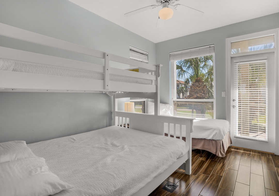 Guest Bedroom: Twin over Queen bunk bed + Extra Twin Bed