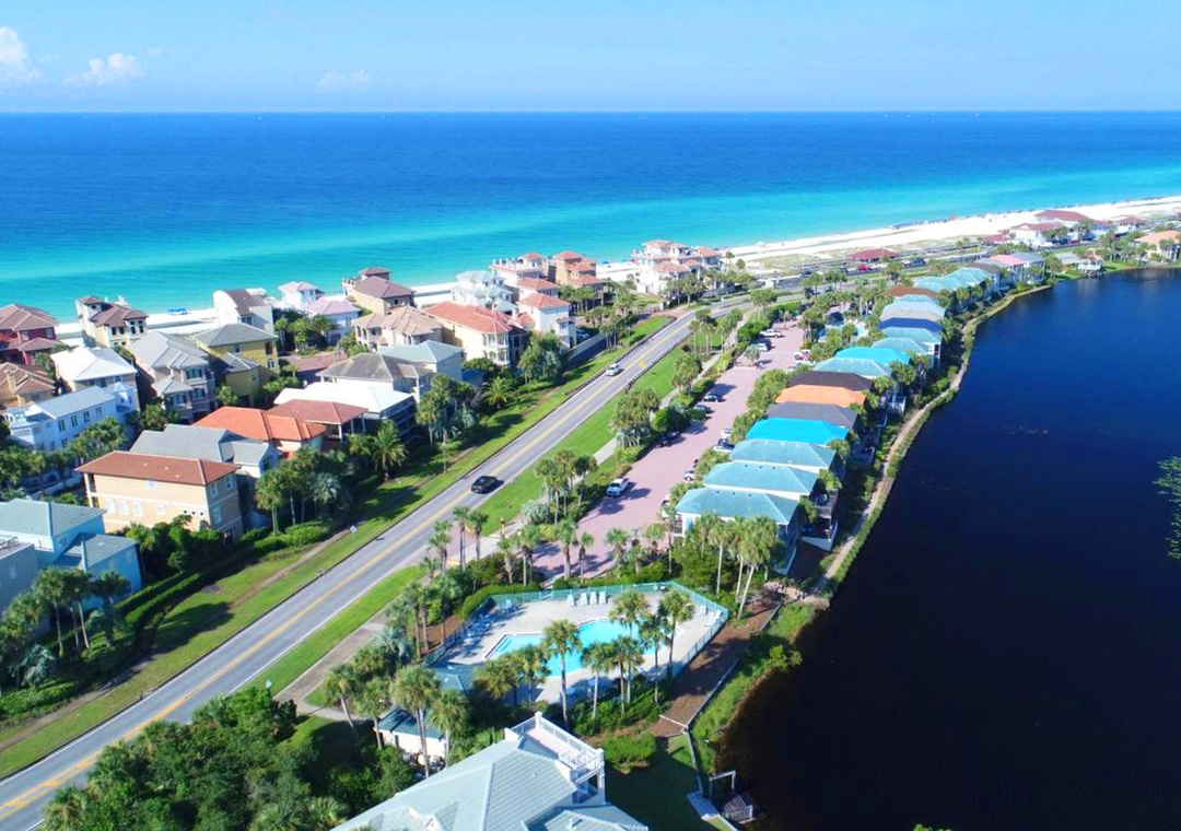 Destiny Beach Villas is a small complex of 2 story villas on Scenic Hwy 98 in Destin. Situated on Four Prong Lake and just steps away from the beach, these homes offer an ideal location for your next vacation. This prime spot is right across from the legendary Crab Trap beachside restaurant. Amenities include a sparkling community pool and outdoor grilling area. Come see why guests vacation at Destiny Beach Villas year after year!