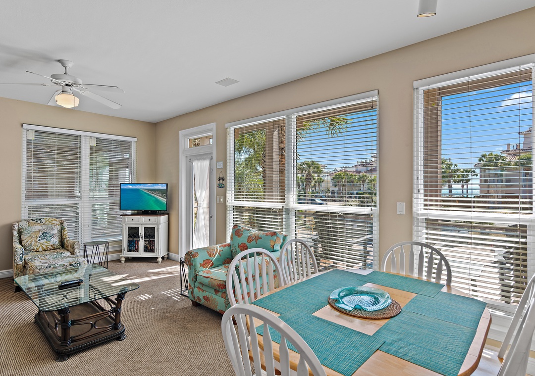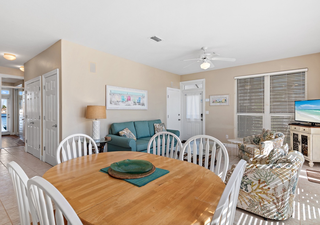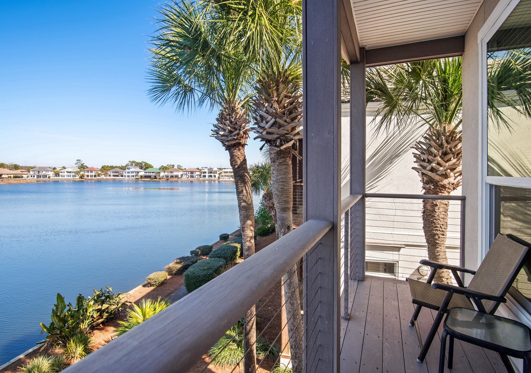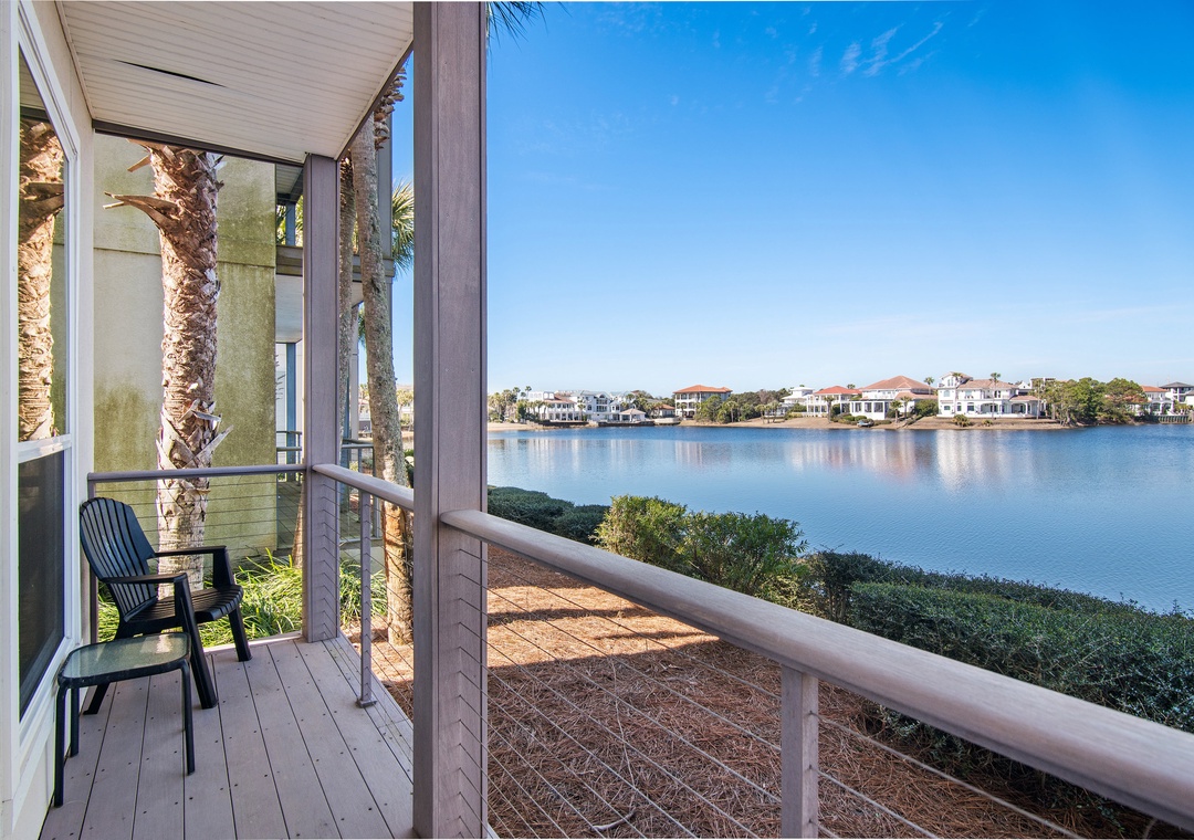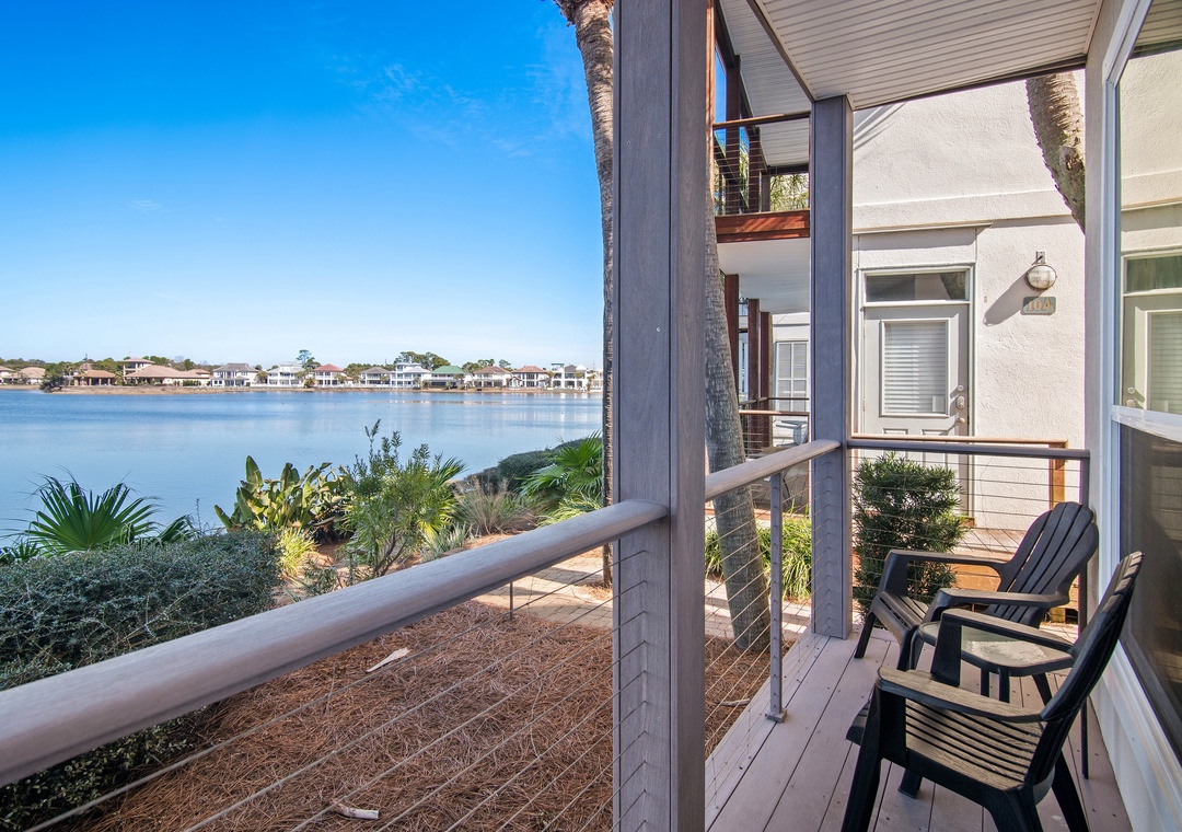 Destiny Beach Villas #9A and #9B together occupy two separate levels of a charming beach villa and offer magnificent, unobstructed views of Four Prong Lake, making them ideal for large families or multiple families vacationing together. The combined space features four bedrooms and four bathrooms, along with two living rooms, two fully equipped kitchens, two porches, and two balconies—providing plenty of room for everyone to relax and unwind. Each kitchen has everything needed to prepare family meals, while large windows surrounding the dining areas fill the home with natural light. Guests can enjoy peaceful mornings or sunset evenings on the porches or balconies overlooking the lake. Sleeping accommodations include a king master bedroom, queen guest bedroom, and queen sleeper sofa on each level. With spacious living areas, beautiful lake views, and a prime Destin location, Destiny Beach Villas #9A and B offer thoughtful amenities and the perfect setting for an unforgettable coastal getaway.