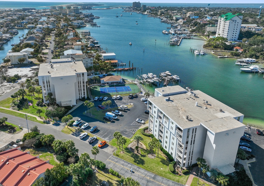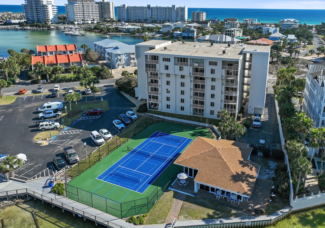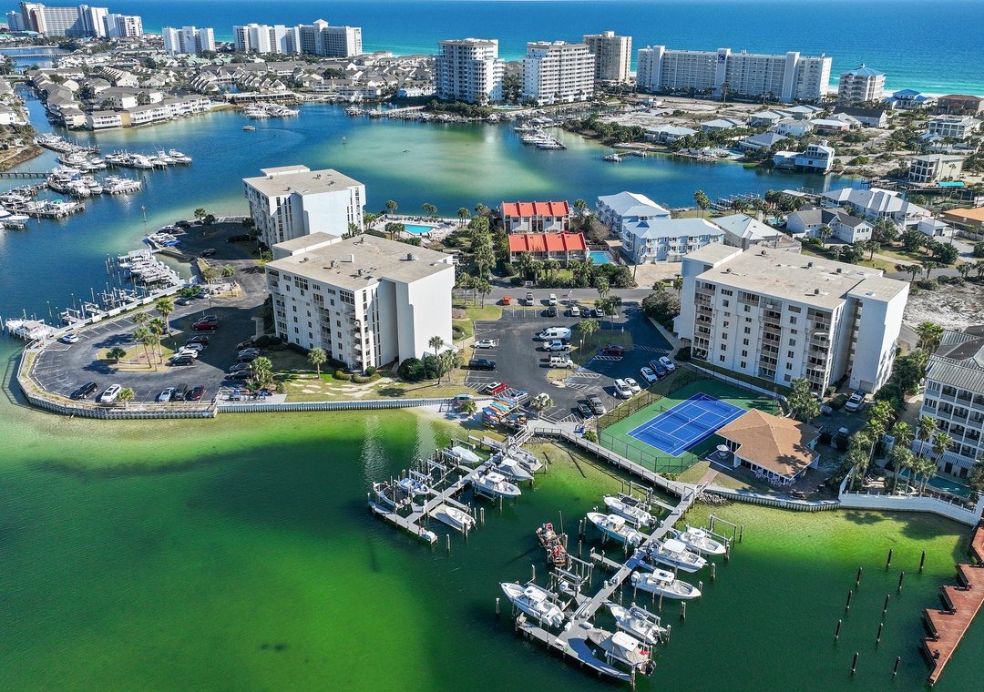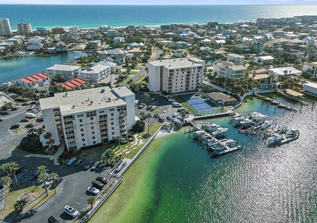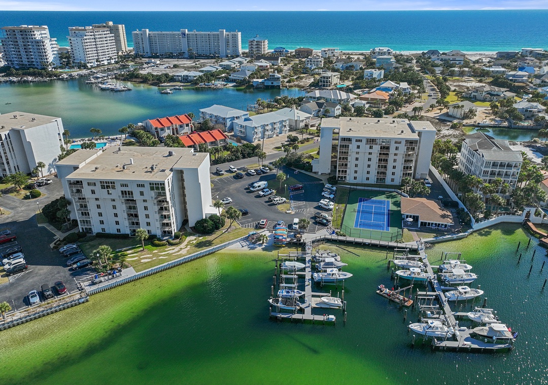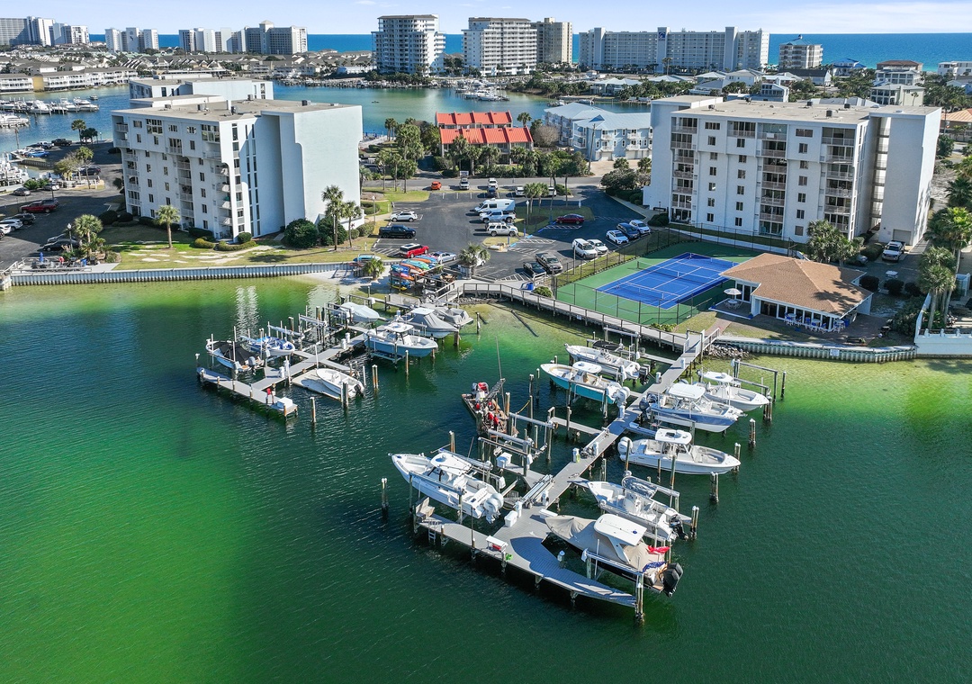 Dolphin Point on Holiday Isle is a quiet, low-rise condominium complex of three buildings offering three different, gorgeous views. Enjoy the condominium pool, tennis court, and laundry facilities at the end of each hall by the elevators. Located next to the Destin Harbor, this condominium is a wonderful getaway for boat enthusiasts and beach lovers alike, with amazing views of boats going into and out of the harbor, plus a short walk to the sugar white beach.Â
