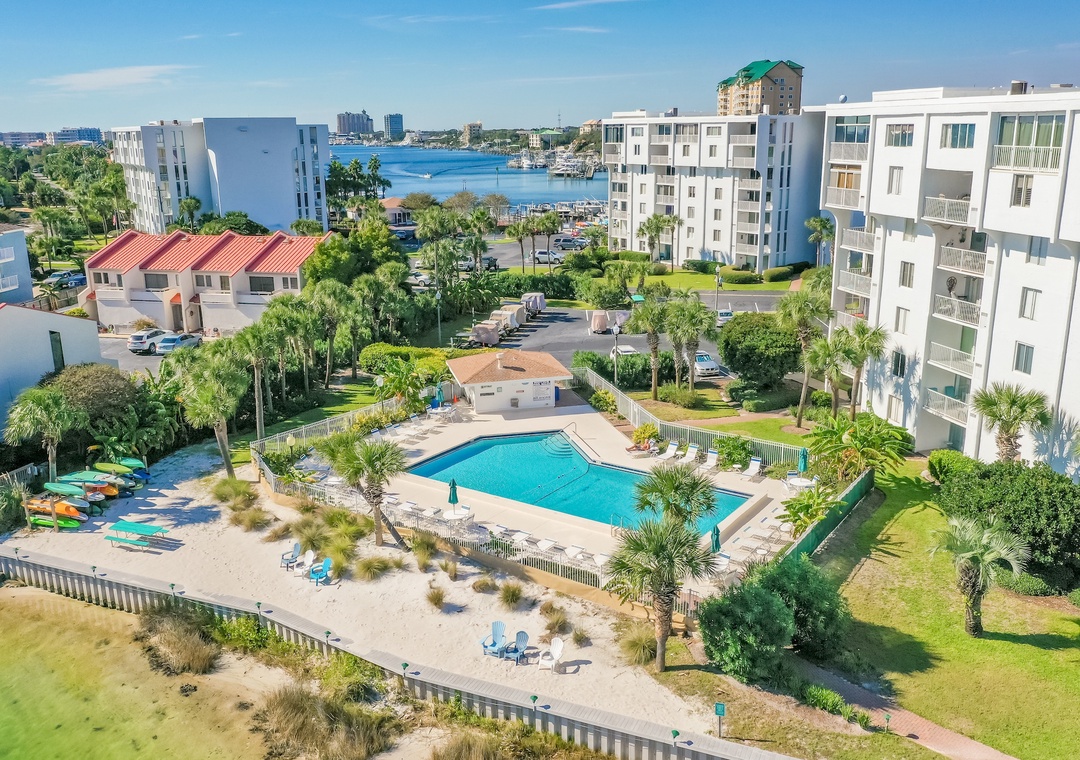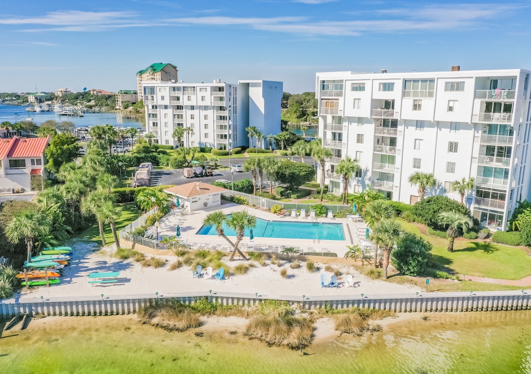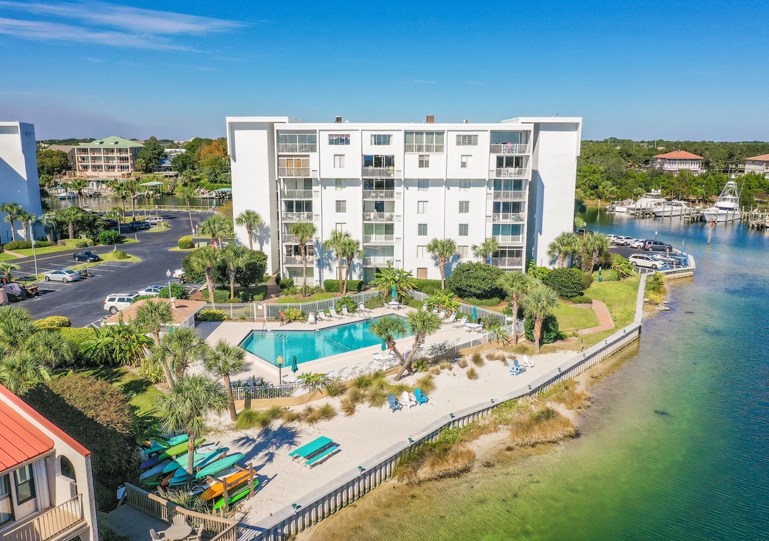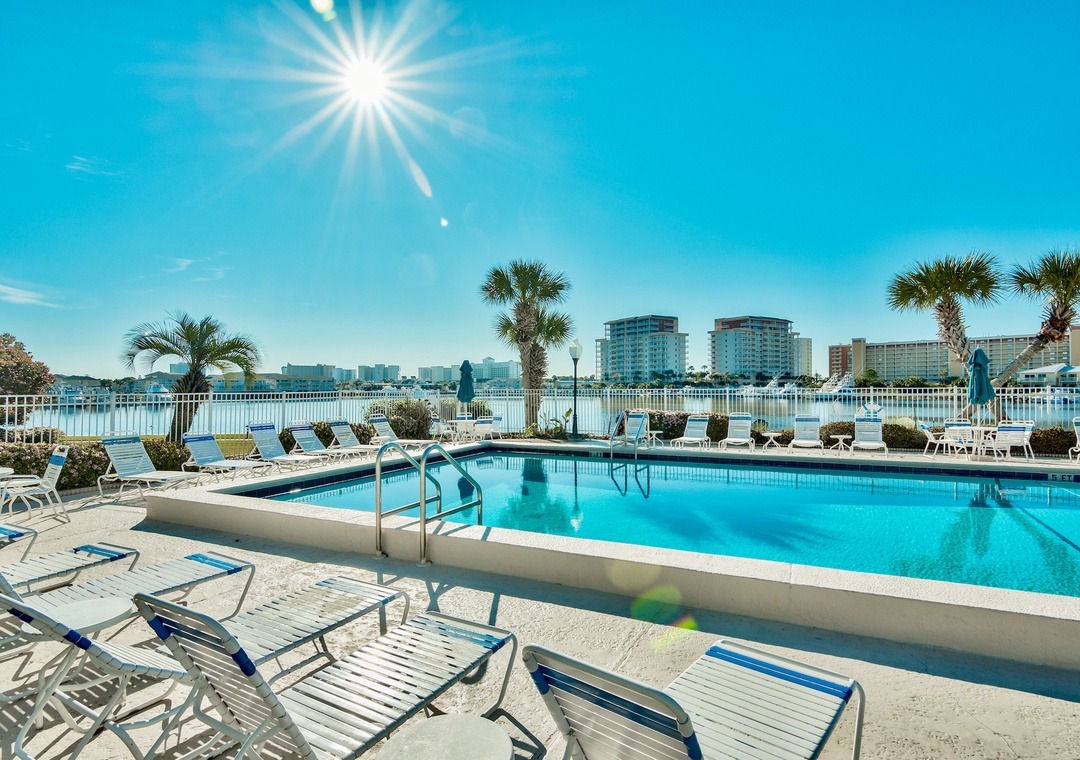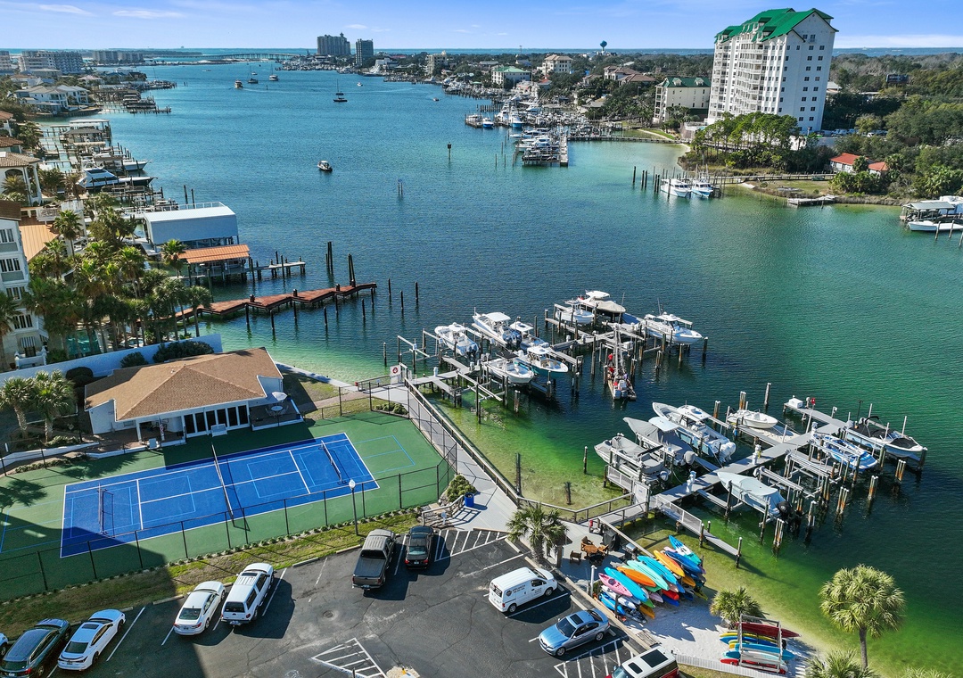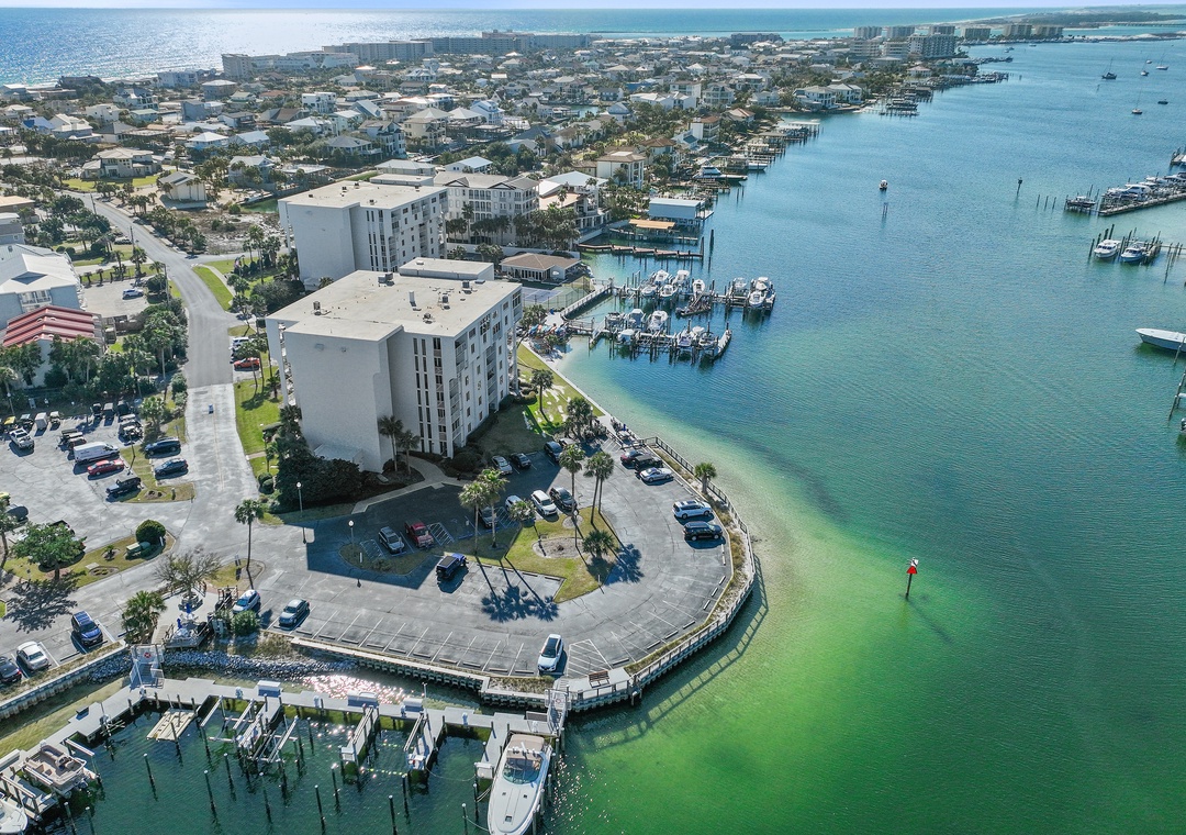 Dolphin Point on Holiday Isle is a quiet, low-rise condominium complex of three buildings offering three different, gorgeous views. Enjoy the condominium pool, tennis court, and laundry facilities at the end of each hall by the elevators. Located next to the Destin Harbor, this condominium is a wonderful getaway for boat enthusiasts and beach lovers alike, with amazing views of boats going into and out of the harbor, plus a short walk to the sugar white beach.Â