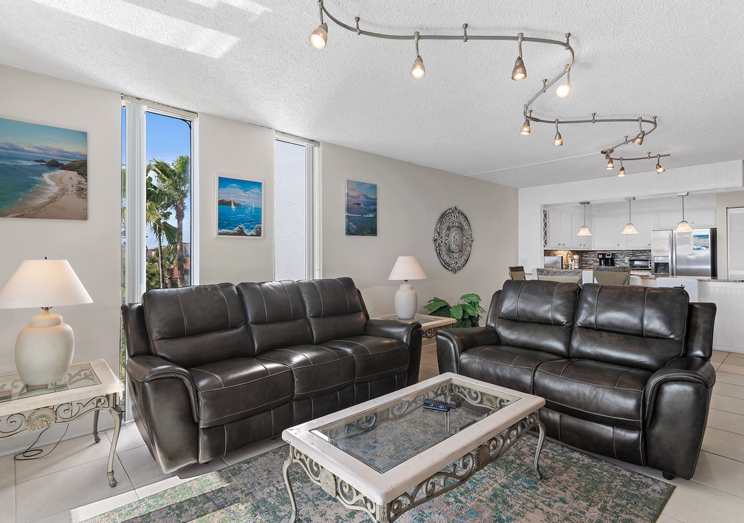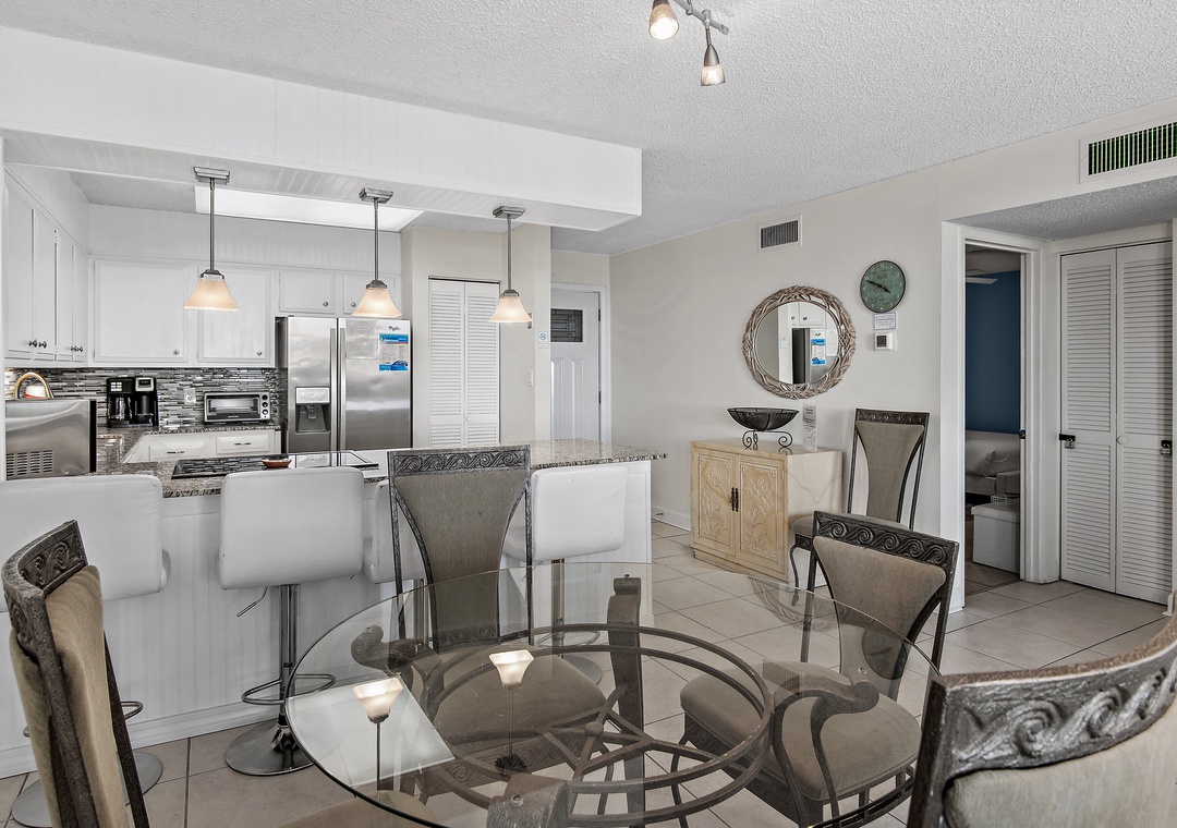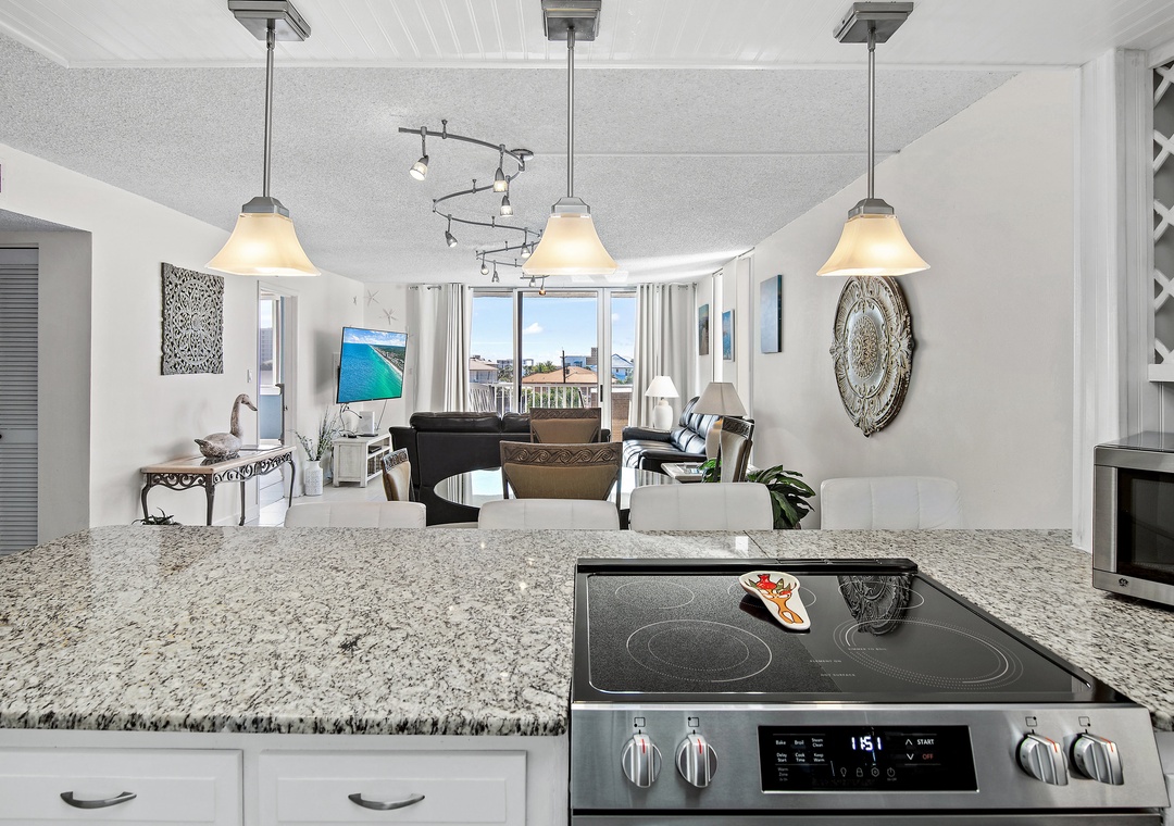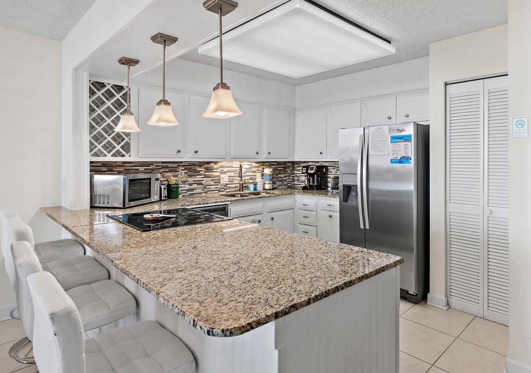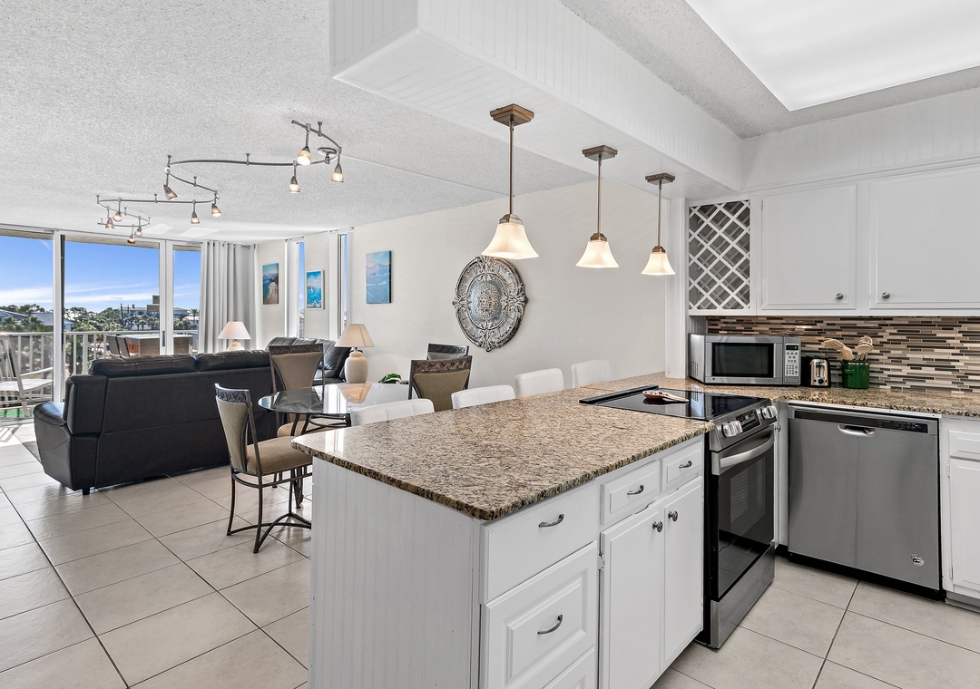 Escape to Dolphin Point 406A, a stunning two-bedroom, two-bathroom harborside condo that comfortably accommodates up to six guests. The master suite features a plush king-size bed and private en suite, while the guest bedroom offers two queen-size beds for added comfort. Start your mornings with coffee on the private balcony as you take in the views, then head down to the man-made beach along a seawall for a day in the sun. Or take a quick drive to the public beach access at Osteen Beach or Norriego Point. Enjoy a fully equipped kitchen with granite countertops and stainless-steel appliances, perfect for preparing meals to enjoy on the patio or deck with elegant Veranda furniture. Spend your evenings grilling on the on-site barbecue, relaxing by the shared pool, or playing on the new tennis and pickleball courts. With beautiful water views, modern amenities, and plenty of space to unwind, Dolphin Point #406A is the perfect destination for your next coastal getaway.