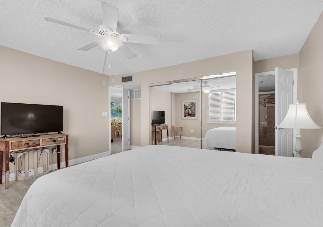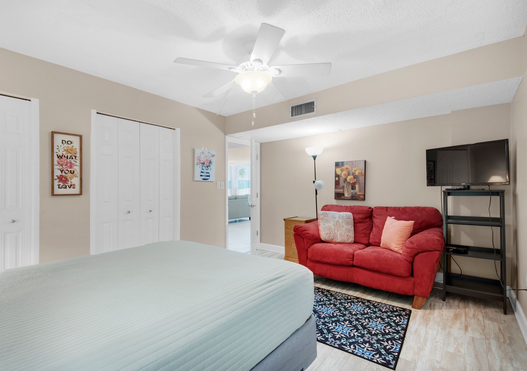 This condo was very and clean with updated bathrooms and kitchen and also had "beachy" feeling. Plenty of room to sleep our family of 5 and we appreciated all the towels for bathing. It was a nice surprise to find 2 beach chairs in the master bedroom closet and also beach toys / rafts / noodles in the little hideaway on the balcony. The beach is a short 8-10 minute walk on sidewalks where you'll cross the street to enter the private, gated beach. The pool was very clean and there was enough chairs / umbrellas for everyone that was utilizing them while we were there. We enjoyed walking down the streets in the neighborhood to see the million dollar homes and yachts on the canal. Great location, only 5 minutes to several restaurants. I would come back and stay in this room again.- Reviewed On: 7/22/2023