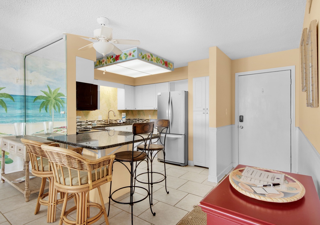 Condo was clean upon arrival. Check-in was easy and straightforward. Complex was quiet and peaceful. Only thing that would have been helpful to know beforehand is that the private beach access is a few blocks away from the actual condo complex. Take a wagon or something to carry your beach gear. Otherwise, would definitely stay here again.- Reviewed On: 6/15/2023
