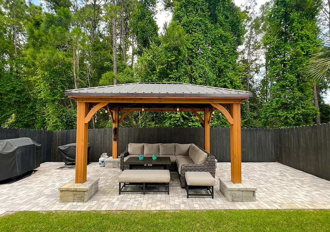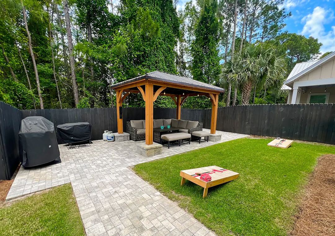 * Fenced Private Backyard with grill, Blackstone, and large greenspace