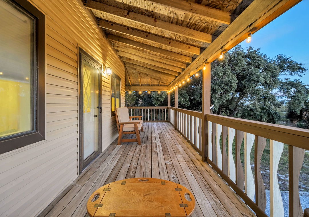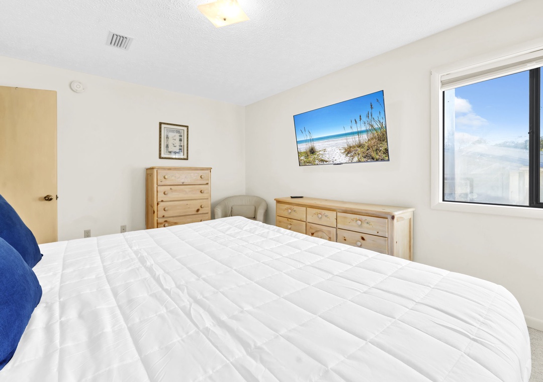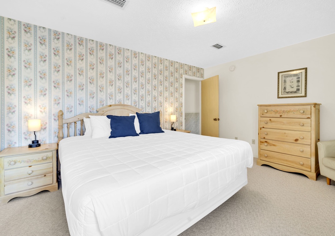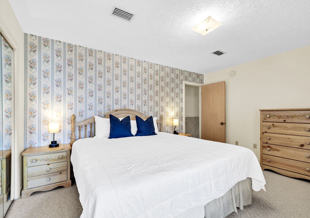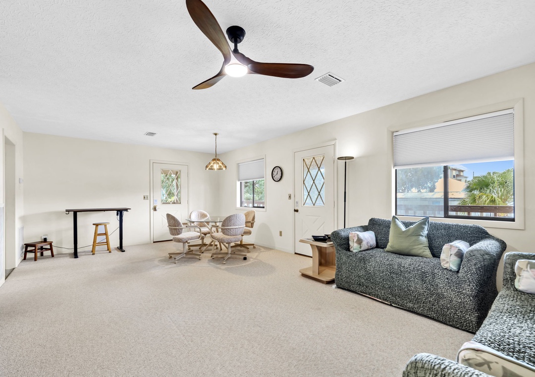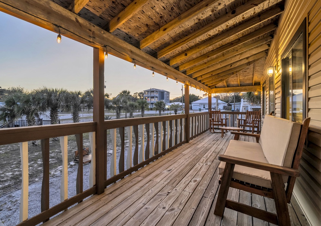 Welcome to Dragonfly Deck, a charming 4-bedroom, 2-bathroom retreat located on the quieter side of Panama City Beach. Relax on the spacious wrap-around balcony, the perfect spot to savor your morning coffee while enjoying the refreshing Gulf breeze and salty air. Inside, the first floor features a cozy queen guest bedroom, a full bathroom, and a convenient laundry room. Head up to the second floor to find a bright and open living area along with a fully equipped kitchen, ideal for gathering and dining. The master bedroom contains a king bed. On the third floor, you'll discover the two additional bedrooms, one with a king bed and one with a queen sleeper sofa. With comfortable accommodations for up to 8 guests, Dragonfly Deck is the perfect place to unwind and enjoy your beach getaway.