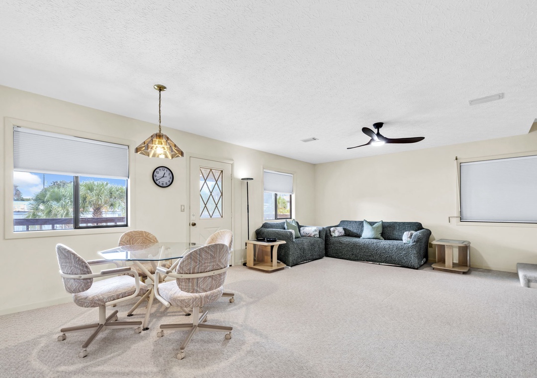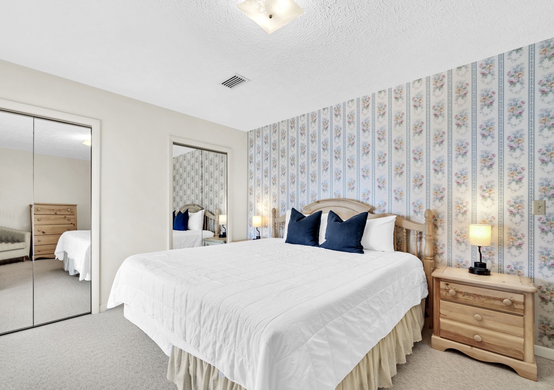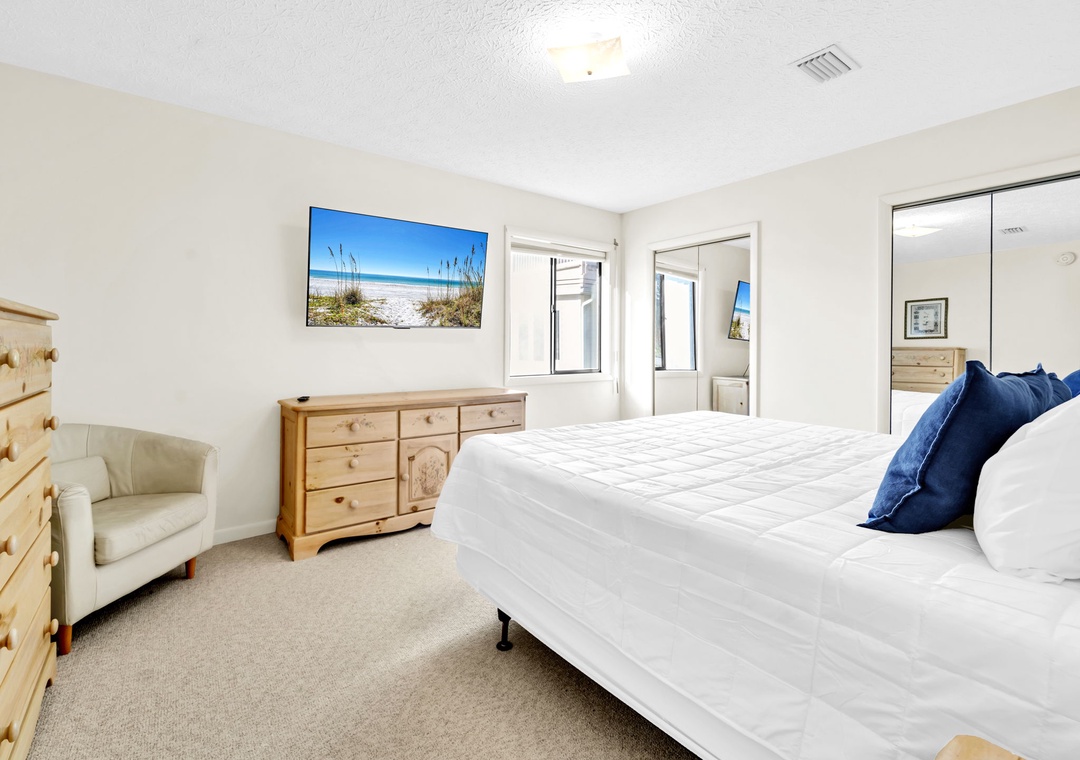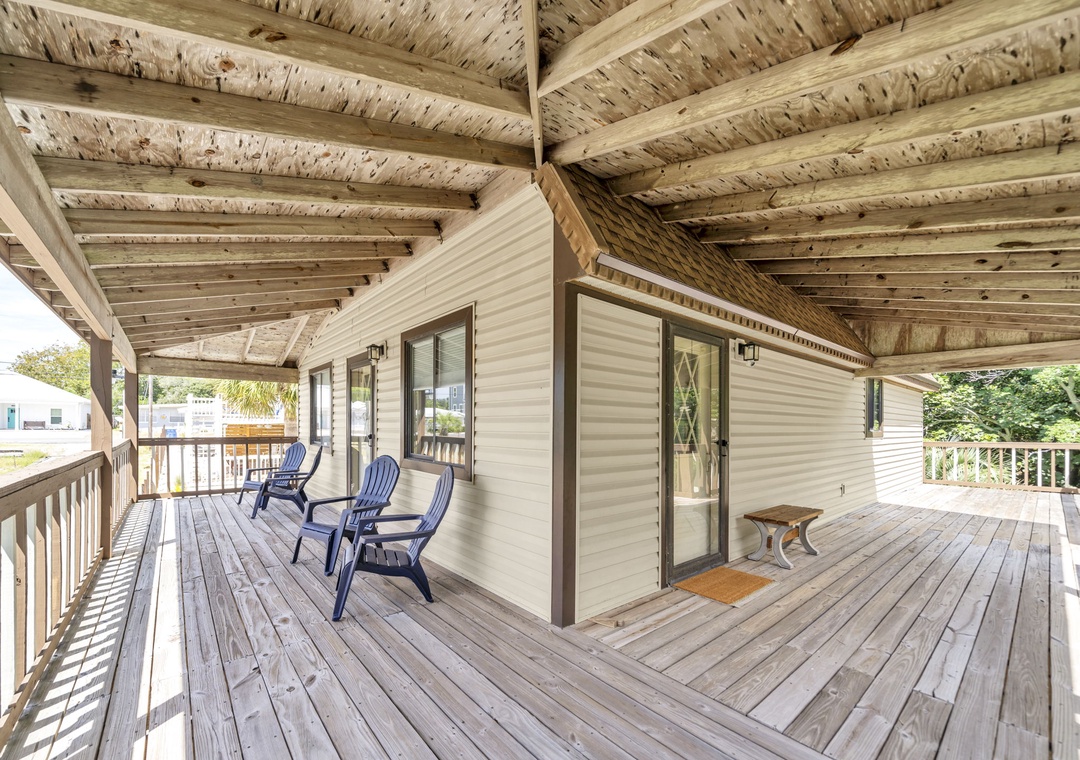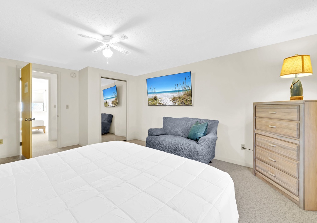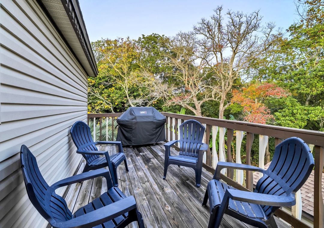 Welcome to Dragonfly Deck, a charming 4-bedroom, 2-bathroom retreat located on the quieter side of Panama City Beach. Relax on the spacious wrap-around balcony, the perfect spot to savor your morning coffee while enjoying the refreshing Gulf breeze and salty air. Inside, the first floor features a cozy queen guest bedroom, a full bathroom, and a convenient laundry room. Head up to the second floor to find a bright and open living area along with a fully equipped kitchen, ideal for gathering and dining. The master bedroom contains a king bed. On the third floor, you'll discover the two additional bedrooms, one with a king bed and one with a queen sleeper sofa. With comfortable accommodations for up to 8 guests, Dragonfly Deck is the perfect place to unwind and enjoy your beach getaway.