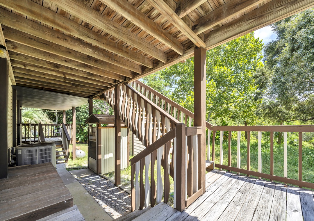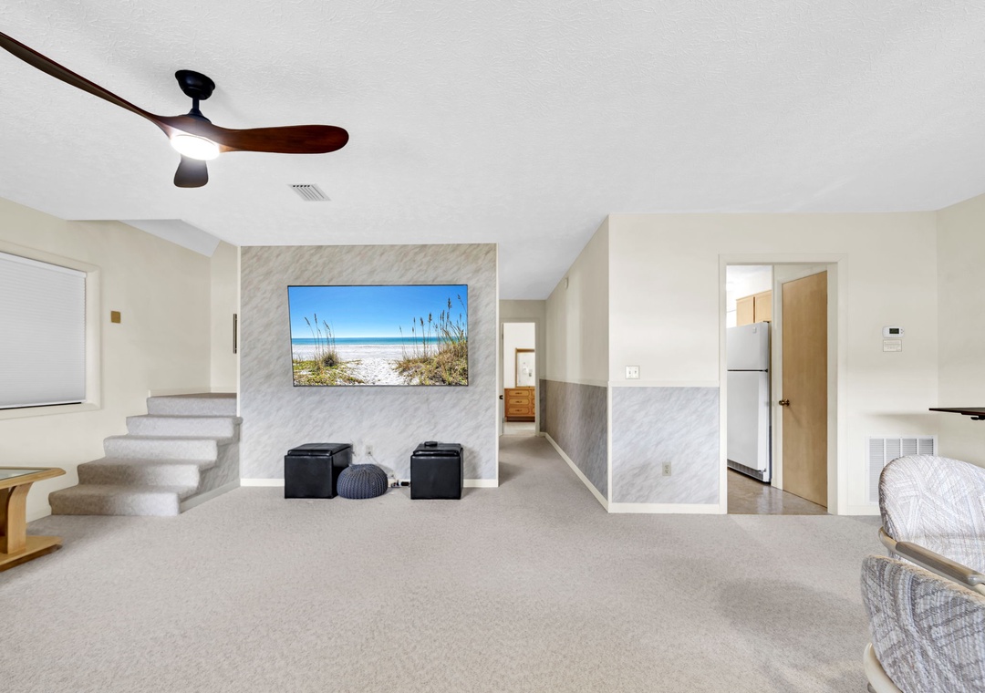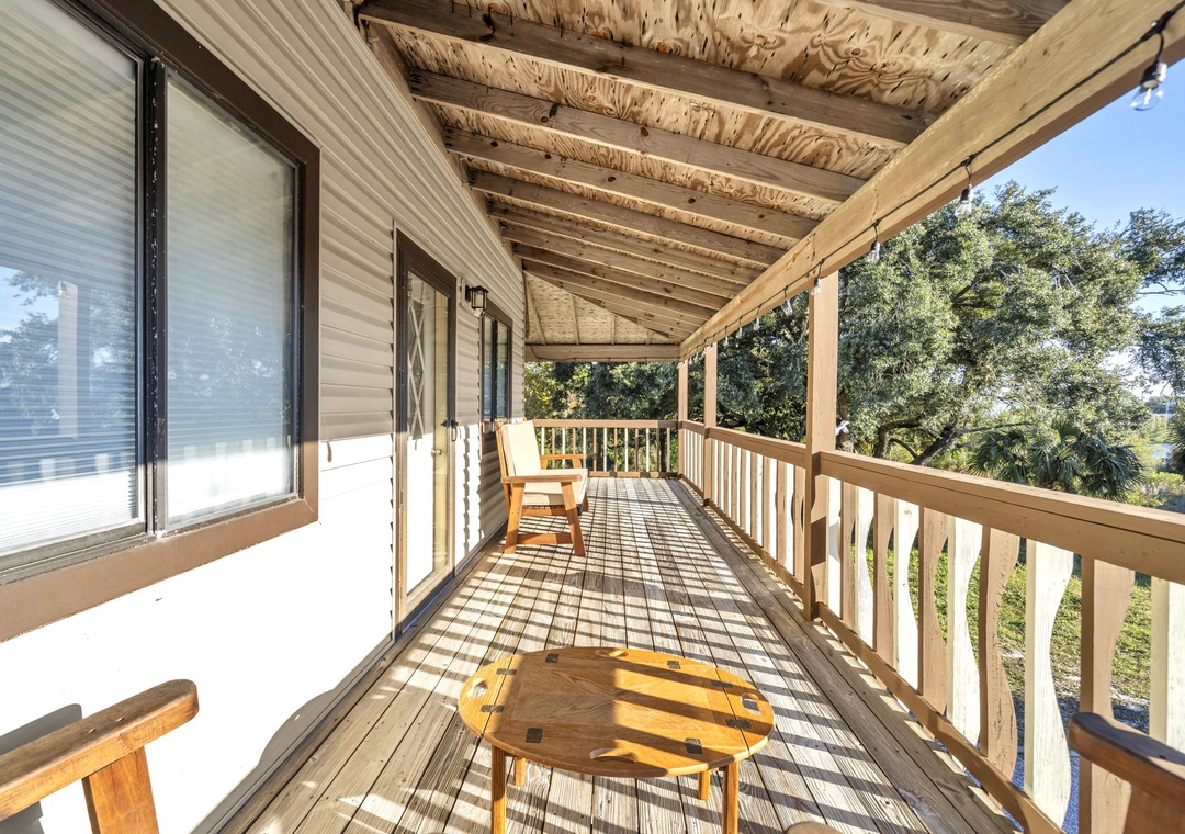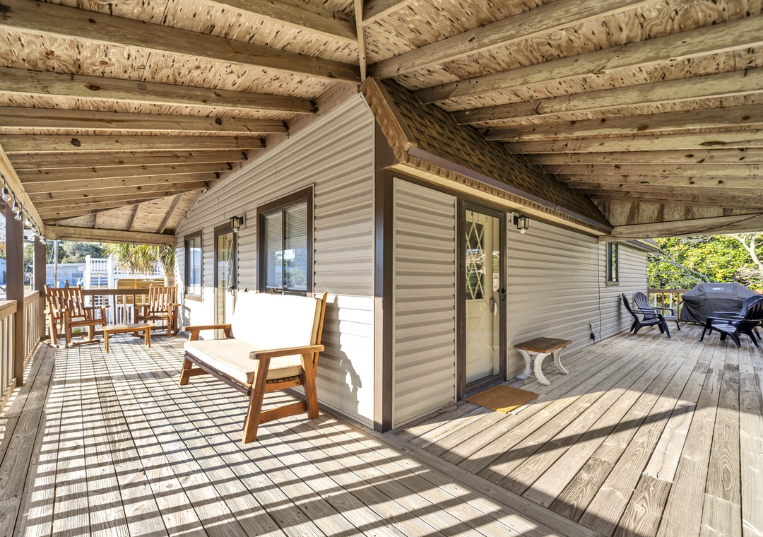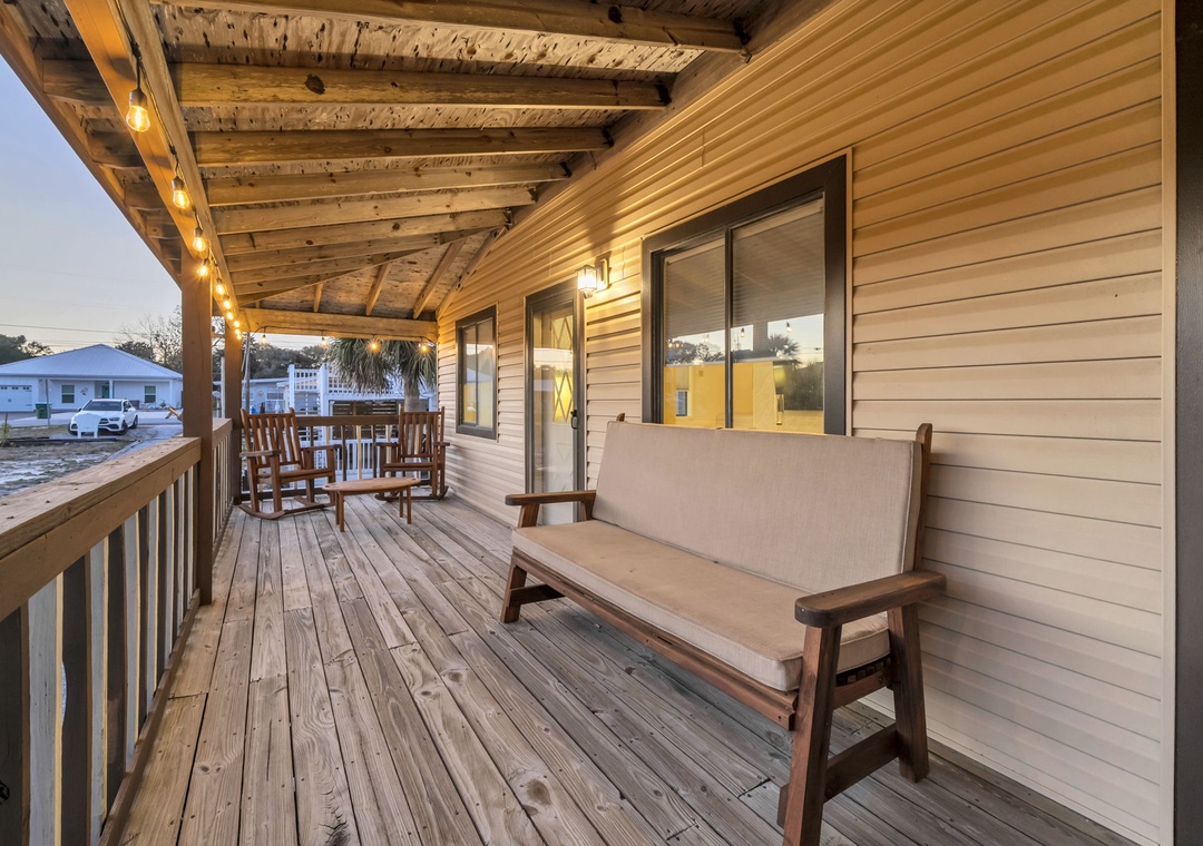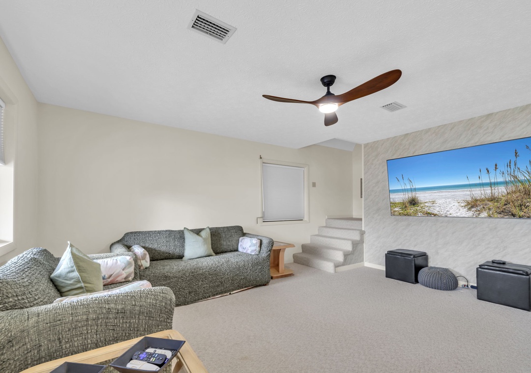 Welcome to Dragonfly Deck, a charming 4-bedroom, 2-bathroom retreat located on the quieter side of Panama City Beach. Relax on the spacious wrap-around balcony, the perfect spot to savor your morning coffee while enjoying the refreshing Gulf breeze and salty air. Inside, the first floor features a cozy queen guest bedroom, a full bathroom, and a convenient laundry room. Head up to the second floor to find a bright and open living area along with a fully equipped kitchen, ideal for gathering and dining. The master bedroom contains a king bed. On the third floor, you'll discover the two additional bedrooms, one with a king bed and one with a queen sleeper sofa. With comfortable accommodations for up to 8 guests, Dragonfly Deck is the perfect place to unwind and enjoy your beach getaway.