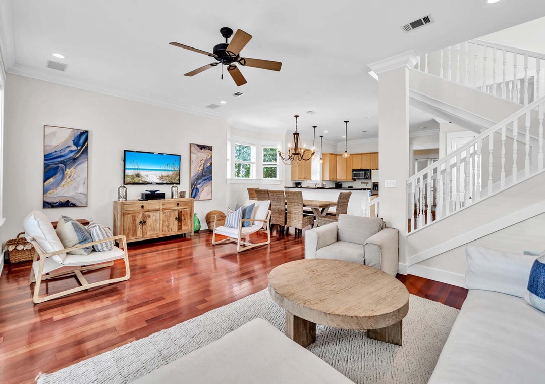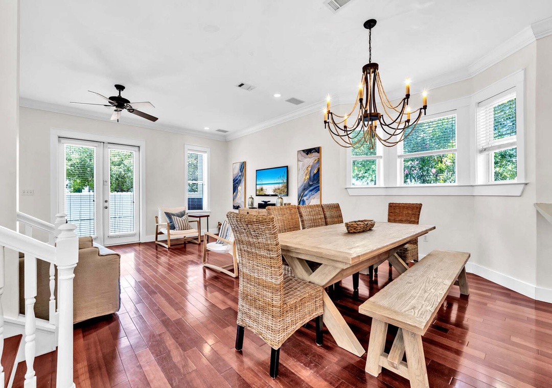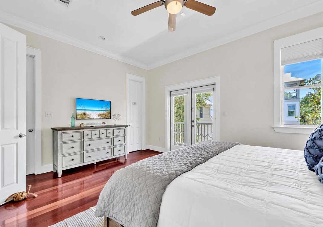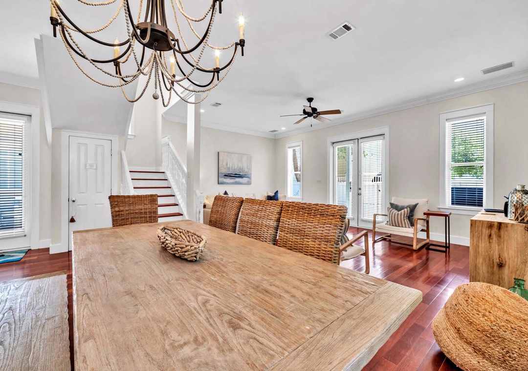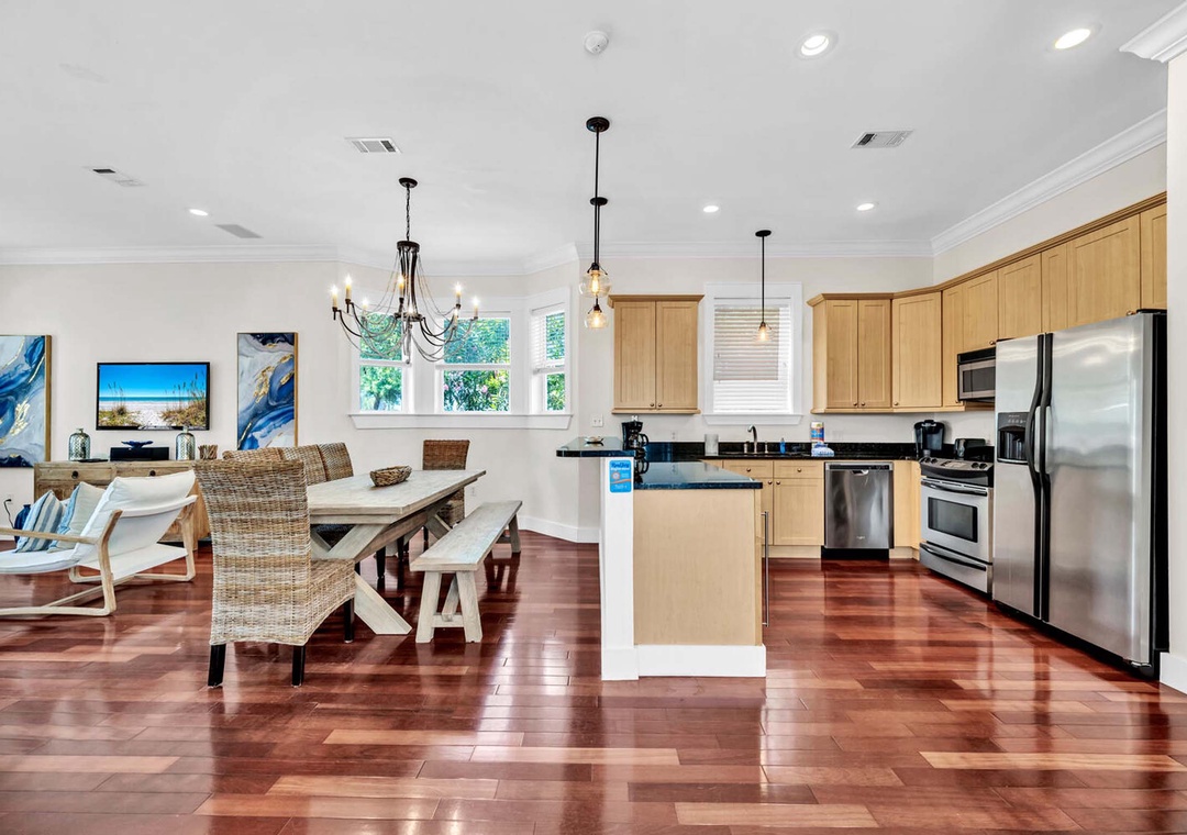 Welcome to Dragonfly Dreams 30A, a stunning three-story coastal retreat nestled in the charming Seacrest Beach neighborhood. After a day of sun and fun, unwind on the upstairs porch swing or relax in the spacious living room while watching your favorite movie. The family chef will be in paradise in the fully-equipped kitchen, perfect for preparing delicious meals. The first floor features Guest Bedroom 1 with a comfortable queen bed. On the second floor, you'll find the luxurious king master suite with an ensuite bathroom, complete with a soaking tub and walk-in shower. There are also two additional guest bedrooms—Guest Bedroom 2 with a queen bed, and Guest Bedroom 3 with two twin beds. Head up to the third floor, where the kids will love the two sets of twin bunk beds and a convenient half bath. For some fun outside, take the family to the large community pool or hop on the seasonal tram for a quick ride to the gorgeous beaches. Dragonfly Dreams 30A is sure to become a beloved family tradition!