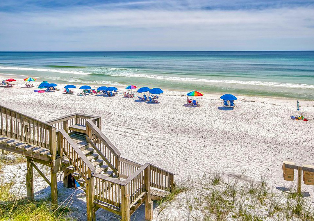 Sunseekers is a small beachfront complex that boasts a private beach walkway in Blue Mountain Beach, just off Hwy 30A! You’ll be within a couple of blocks of Redfish Village with shops and restaurants, bike and surf rentals and other conveniences. Don’t forget to walk over to Blue Mountain Beach Creamery for a homemade scoop! Enjoy the beautiful sugar white sand beaches that made 30A world famous. Explore Redfish Lake, one of the few coastal dune lakes in the world. Come and see for yourself what makes Sunseekers and the 30A area so special! Please note there is no elevator at this property.