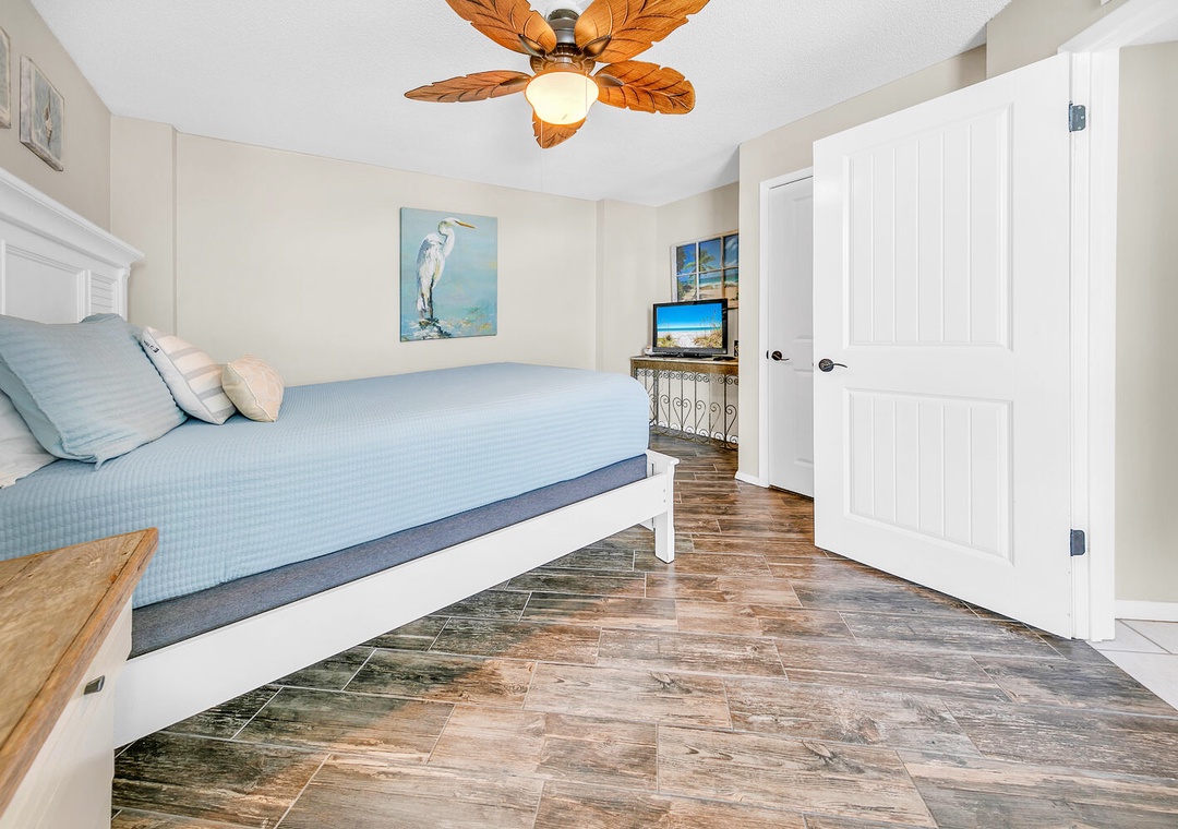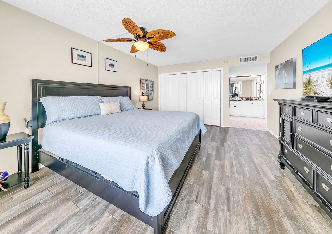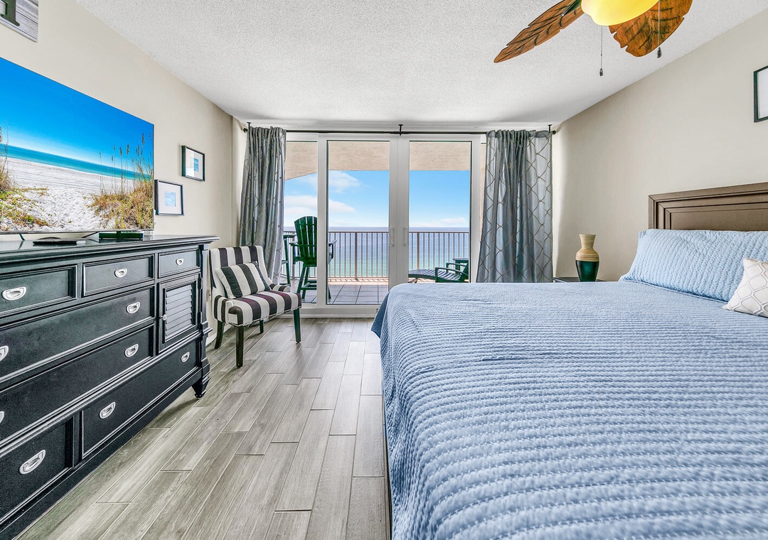 Treat yourself to a getaway at Dunes of Panama 2104E, the cutest 2BR/2BA condo located steps from the Gulf of America! This amazing condo overlooks the sugar-white sands and emerald waters of the Gulf. Catch the sunset or sunrise on your private balcony. With easy access to all THREE pools (one seasonally heated) and loads of other amenities, be prepared to have the vacation of a lifetime! There's a king bed with balcony access in the master, queen beds in the guest room, and two rollaway beds in the living room, sleeping 6 guests comfortably. This Gulf Front condo features a full kitchen, multiple flat-screen TVs, one smart TV in the master bedroom, a bench with hooks right when you walk in to lay your beach bag on, and a washer/dryer. At the end of the day, enjoy a movie on the oversized sectional couch with your family. Have the perfect beach vacation at Dunes of Panama 2104E!