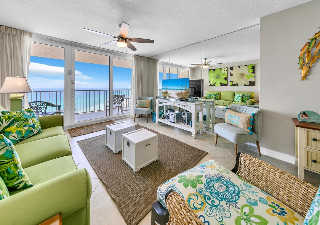Welcome to Dunes of Panama 2105E, the cutest 2BR/2BA condo located steps from the Gulf of America! Gaze across the endless gulf shoreline from your private beachfront balcony and take in the incredible views. With easy access to all THREE pools (one seasonally heated) and loads of other amenities, your group will have the vacation of a lifetime! There's a king bed with balcony access in the master suite, two full beds in the guest bedroom, and a sleeper sofa in the living room, sleeping 8 guests comfortably. Prepare anything from your morning coffee to a four-course dinner in your well-equipped kitchen. Start making memories at Dunes of Panama 2105E that will last a lifetime.