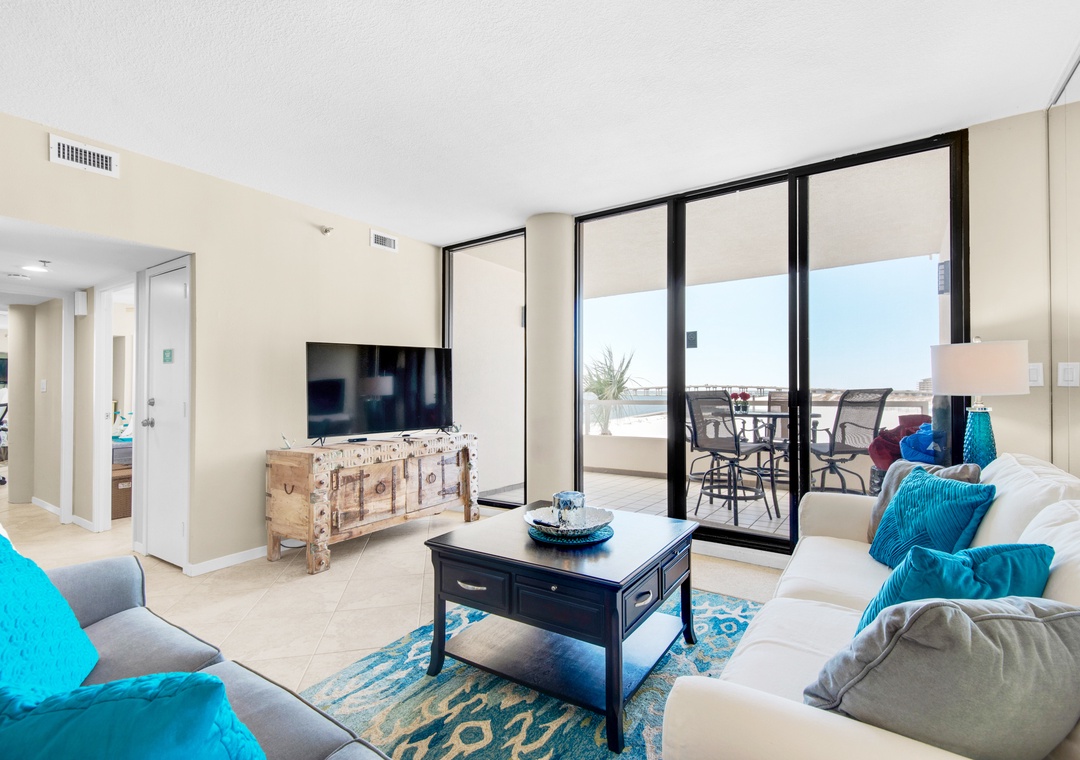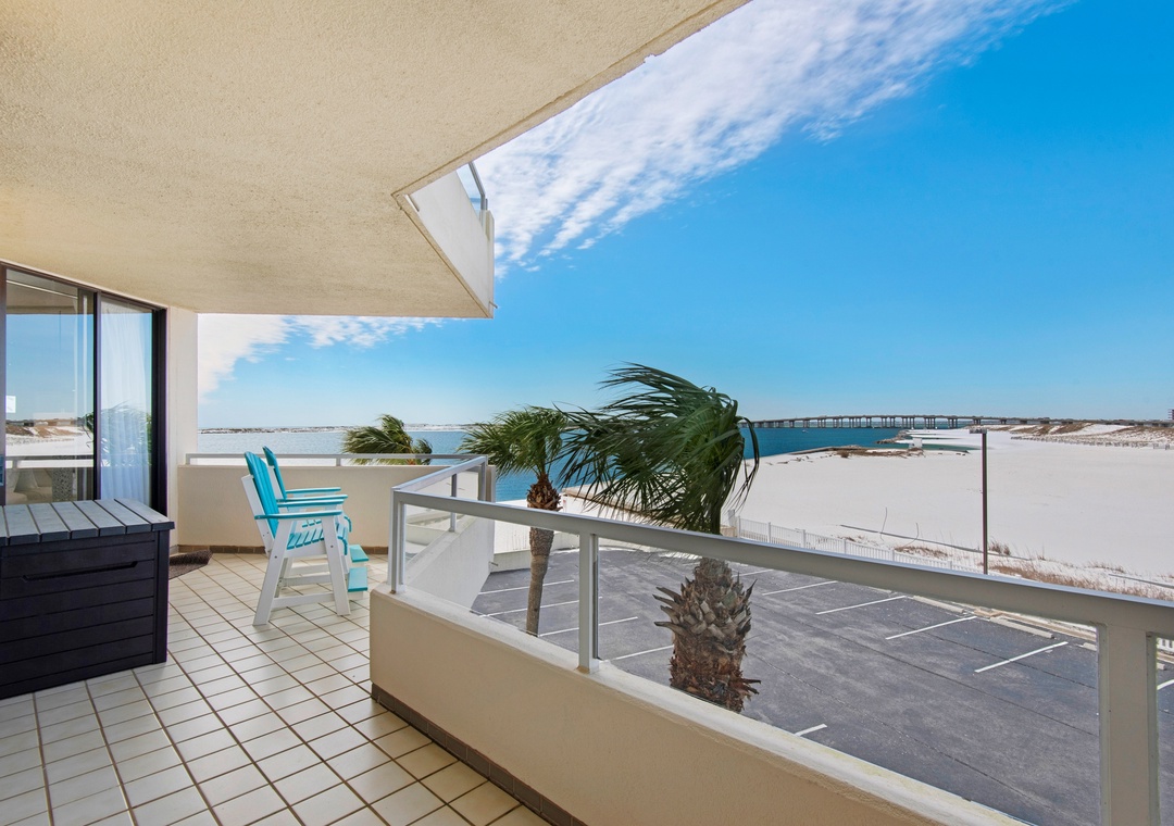 Take in the amazing gulf views at East Pass 209. This beautiful 2 bedroom, 2 bath condominium showcases amazing views of Destin's East Pass and is conveniently located near the harbor. Featuring a king in the master bedroom, queen in guest bedroom, and queen sleeper sofa in the living room, up to 6 guests can sleep here comfortably. Enjoy the pristine cabinets, granite countertops, stainless steel appliances, and a breakfast bar in the kitchen. When you're ready to take a break from the fun and entertainment of the beach and harbor, relax comfortably on the spacious balcony and take in the captivating gulf views, or stream your favorite shows and movies with the Roku enabled TV in the guest room. Book your stay today at East Pass 209.