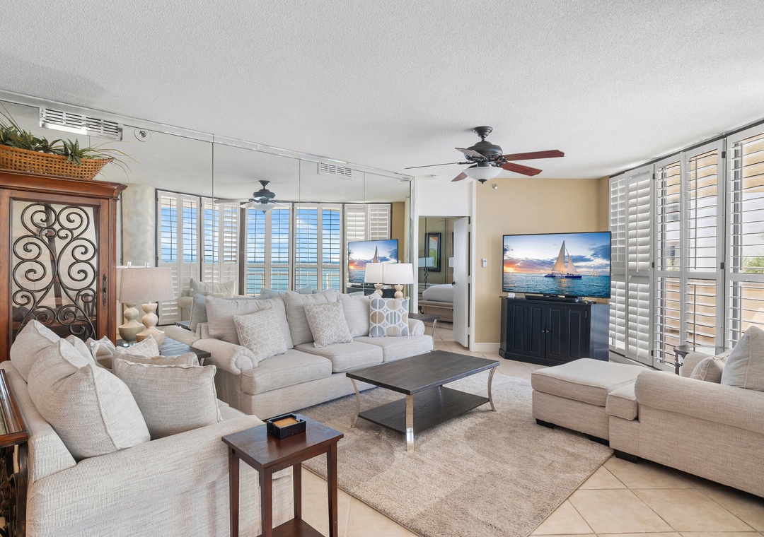 The location and views overlooking the water are spectacular. The layout of the condo with a central living area and separate bedroom wings is great for couples traveling together. Appliances and furnishings are top notch, and the kitchen is very well stocked. Restaurants and shopping are within easy driving distance. We weren't informed that the pool was undergoing repairs prior to our arrival. It was half-filled with water and had some debris and a floating cushion, not a pleasant sight. The secondary bathrooms are functional but need updating.- Reviewed On: 3/7/2025