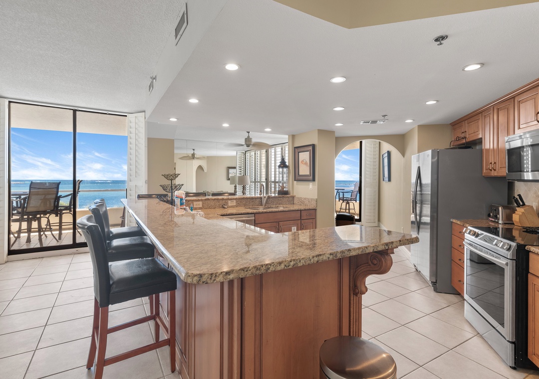 Was blown away with all the views, you can see the ocean and the harbor from the huge balcony at this place. We enjoyed eating our breakfast and lunches out here every day. The kitchen is fully stocked with everything you would need to prepare any meals. Loved the open floor plan.- Reviewed On: 6/14/2023