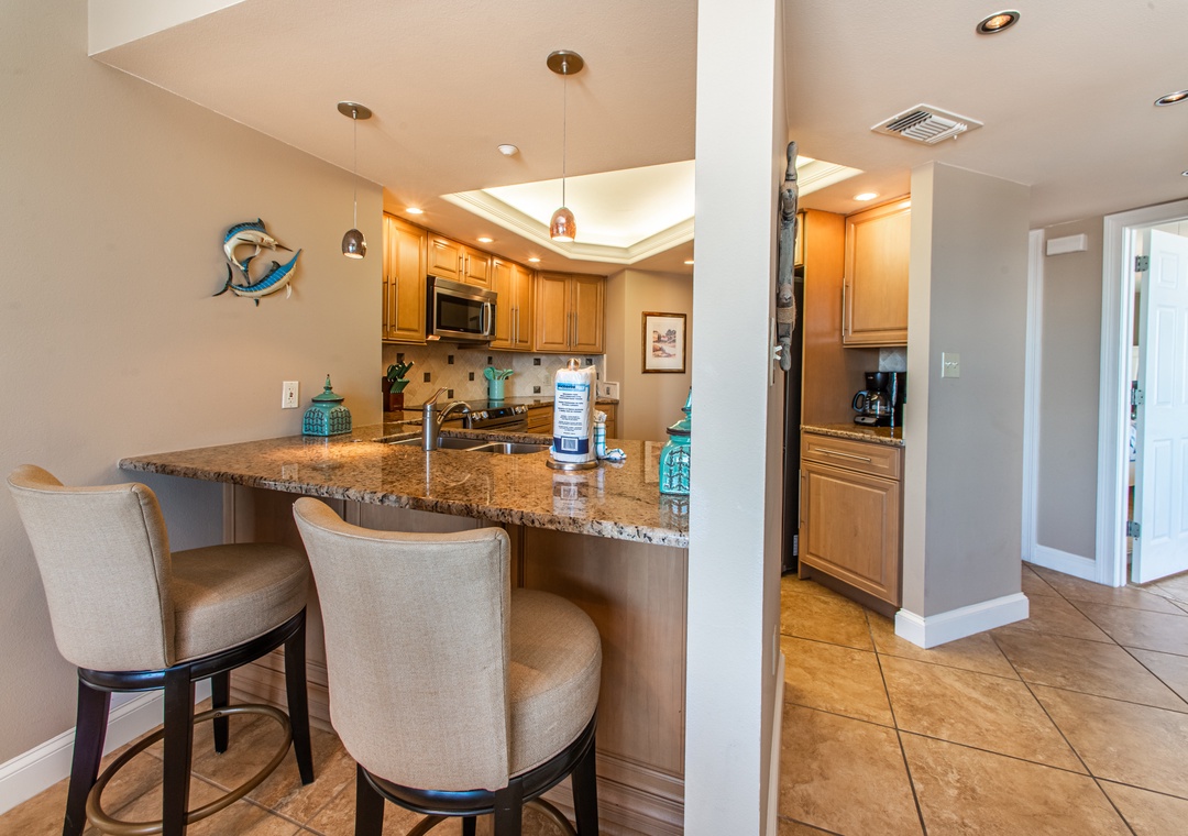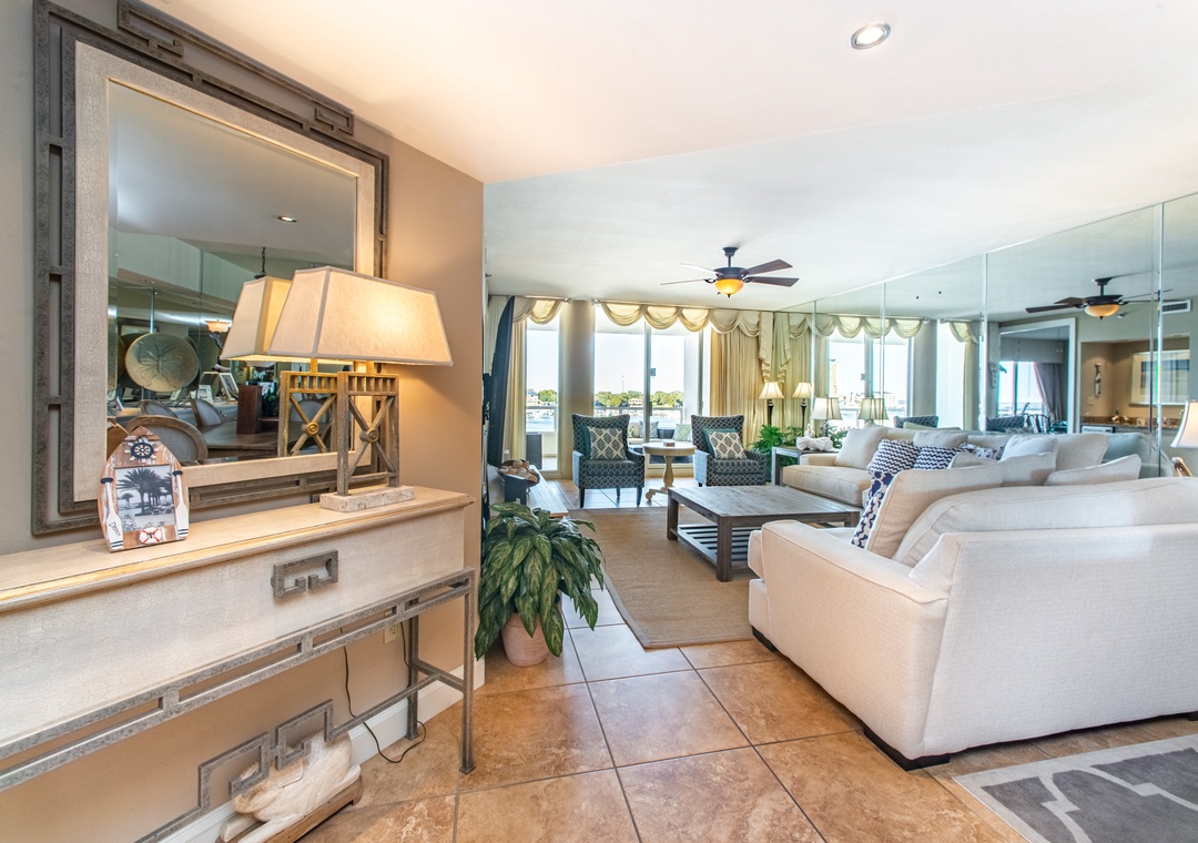 East Pass 407 is a fully updated 2BR/2BA condo situated on beautiful Holiday Isle, between the Destin Harbor and East Pass! Breathe easy while you're indoors, as this condo has a Guardian Air QR+ air purifier to eliminate bacteria, viruses, mold and VOC's from the interior air. The kitchen is simply stunning, featuring granite counter tops, new stainless steel appliances including dishwasher, refrigerator and stove, a breakfast bar, a dining area + extra breakfast nook and gorgeous tile throughout. Watch the boats passing by through the floor to ceiling windows or chill in the beautifully decorated living room with a 70” Smart TV! The first luxurious King master bedroom has private balcony access, 65” smart TV, and a bath with double sinks and a beautifully tiled walk in shower and separate jetted tub. The 2nd King master also has balcony access and a 55” smart TV. Relax on the extended balcony with gorgeous views of the Destin Harbor or watch the sunset on the beachfront pool deck! Make East Pass 407 your next beach getaway!