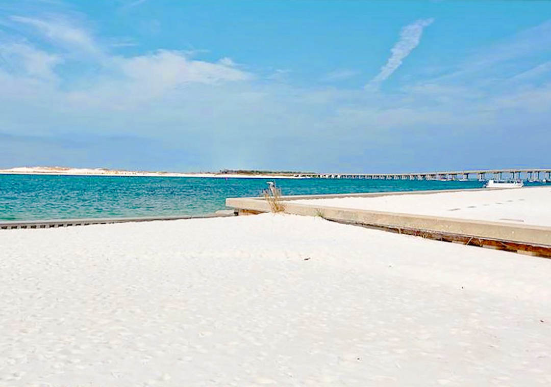 *The beach at East Pass is built up on a seawall and is for sunbathing only, public beach access is next door.