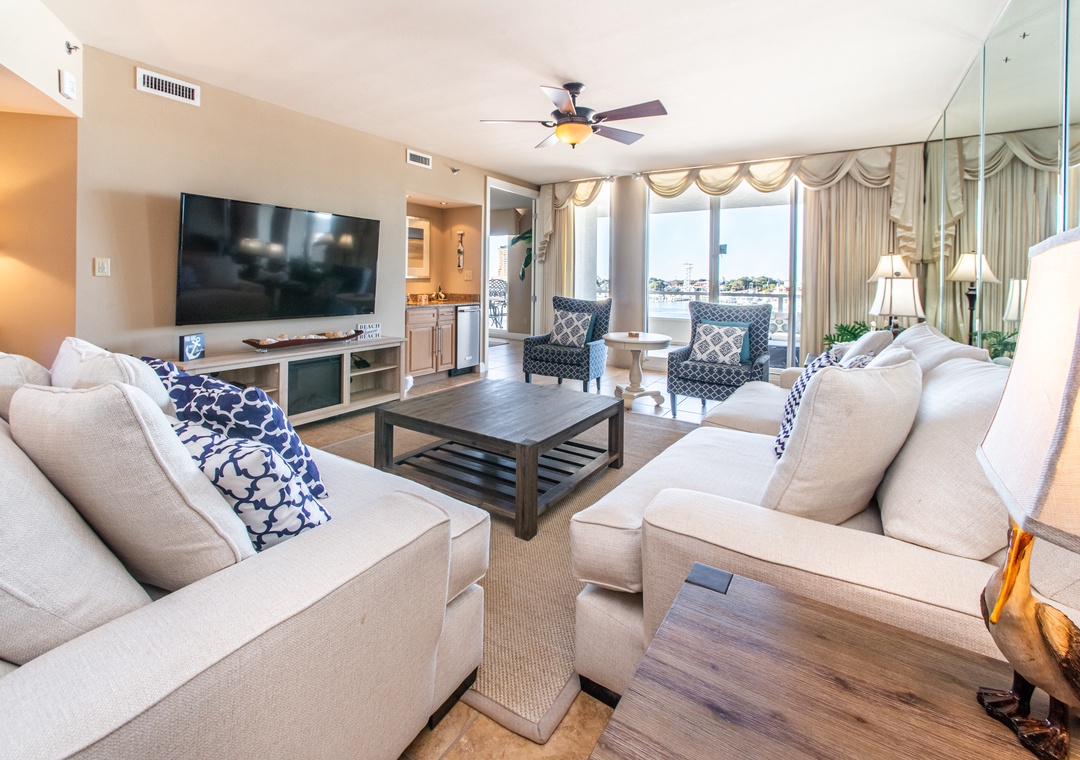 The condo was better than the pictures! Beautiful view of the Harbor and East Pass. The property management is very quick to respond and answer all questions. This condo was very spacious. Inside, we enjoyed the enjoyed the comfortable beds, large televisions, and nice living room area. Outside we loved the pool and hot tub area as well as watching boats on the balcony. You can hear music from the restaurants and bars when you are outside but we didn’t hear a thing from inside the condo. Thanks for a great trip!- Reviewed On: 8/22/2021
