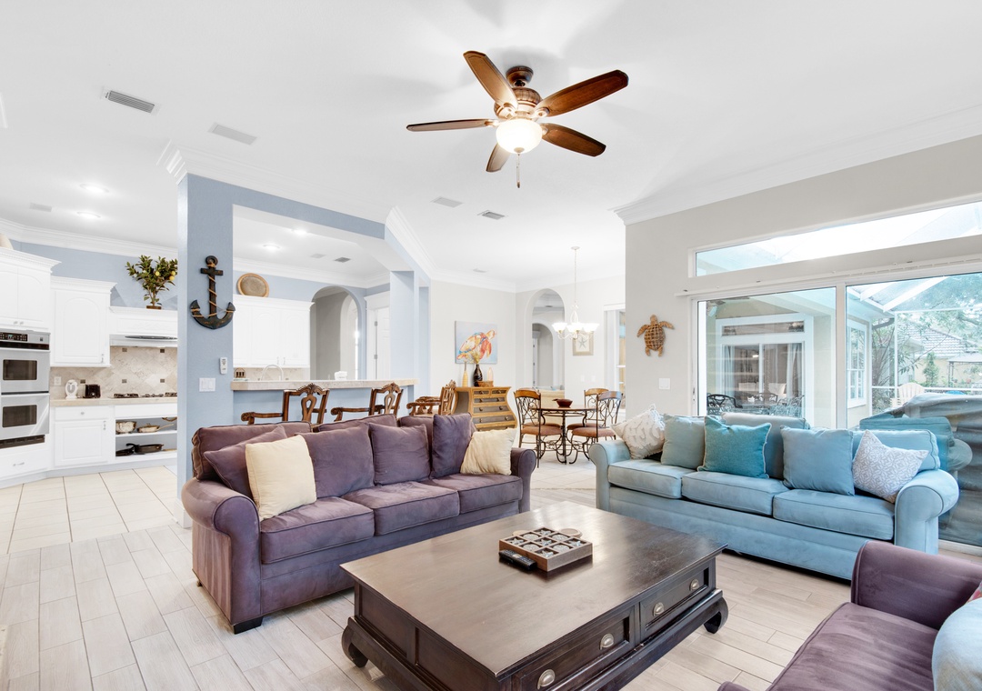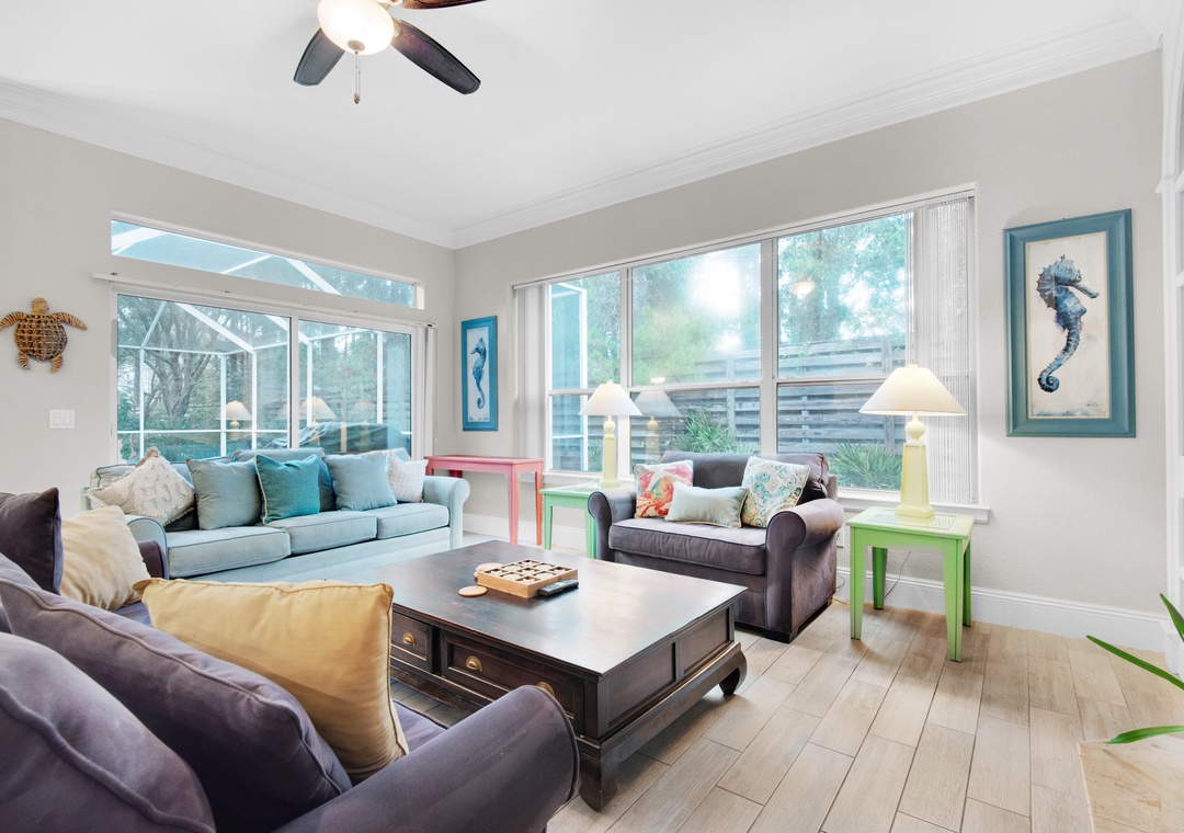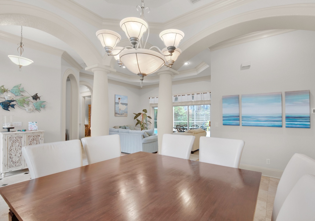 Looking for a beach vacation filled with luxury and relaxation? Look no further than Eat.Sleep.Beach.Repeat, a stunning home located in Destiny East. This spacious home includes 3 bedrooms, 2.5 bathrooms, and is just a short walk from the beach. Each bedroom boasts a comfortable bed, with a king bed in the master suite that includes an ensuite bathroom with a large soaking tub, a separate walk-in shower, and double vanities. The living room is the perfect place to relax and entertain, with plenty of seating, a wet bar, and a brand new Smart TV. In fact, there are new Smart TVs in every bedroom and the living room! Enjoy meals in the upscale kitchen/dining area with stainless steel appliances and ample seating. Step outside into the enclosed sunroom with a patio and grill, or take a dip in your own private pool (heated for an additional fee). The private driveway and garage make parking easy, and you can walk or take the LSV to the beach. With a queen sleeper sofa in the living room, this home can comfortably sleep up to 10 guests. Don't miss out on the opportunity to Eat.Sleep.Beach.Repeat in style!