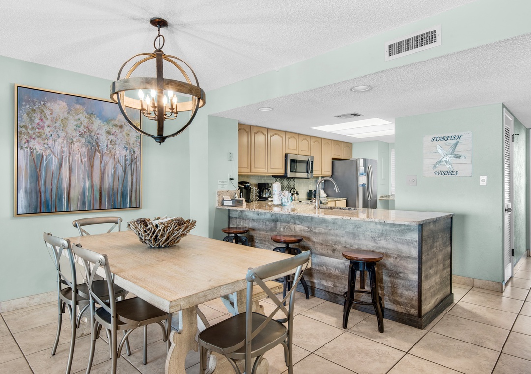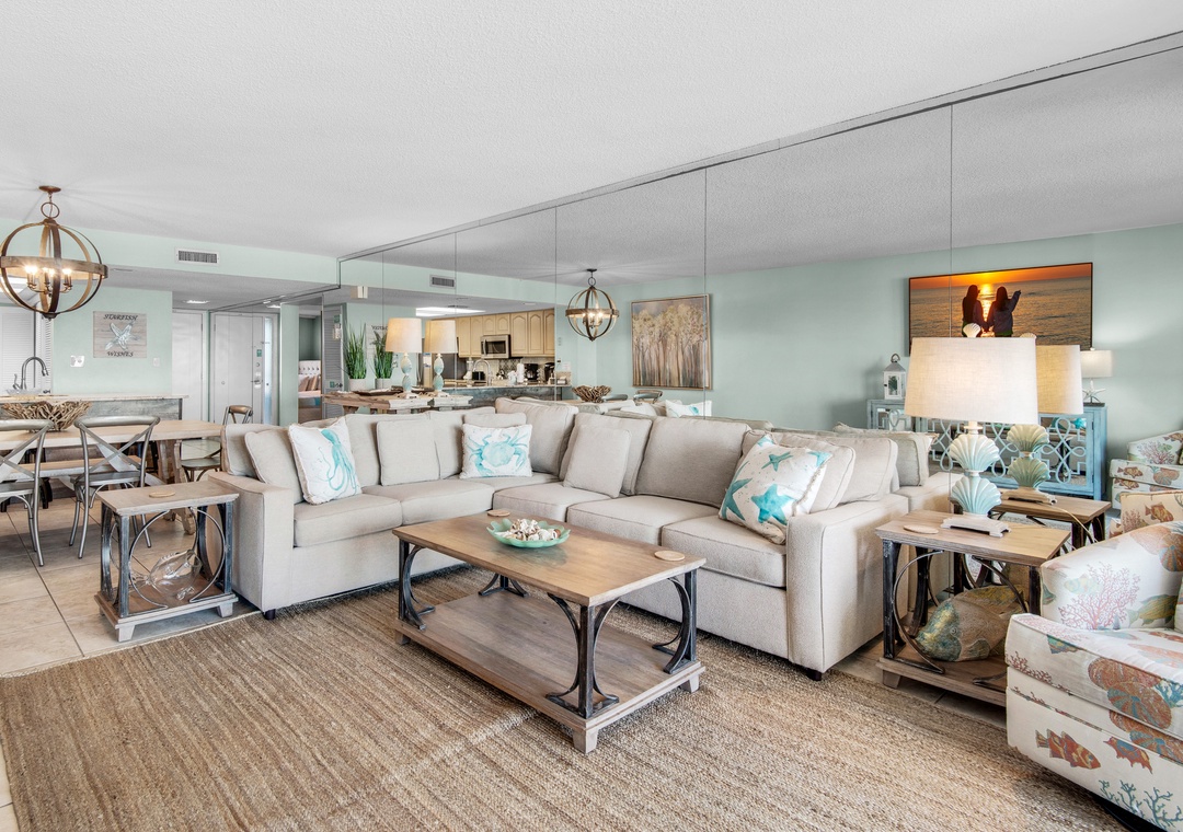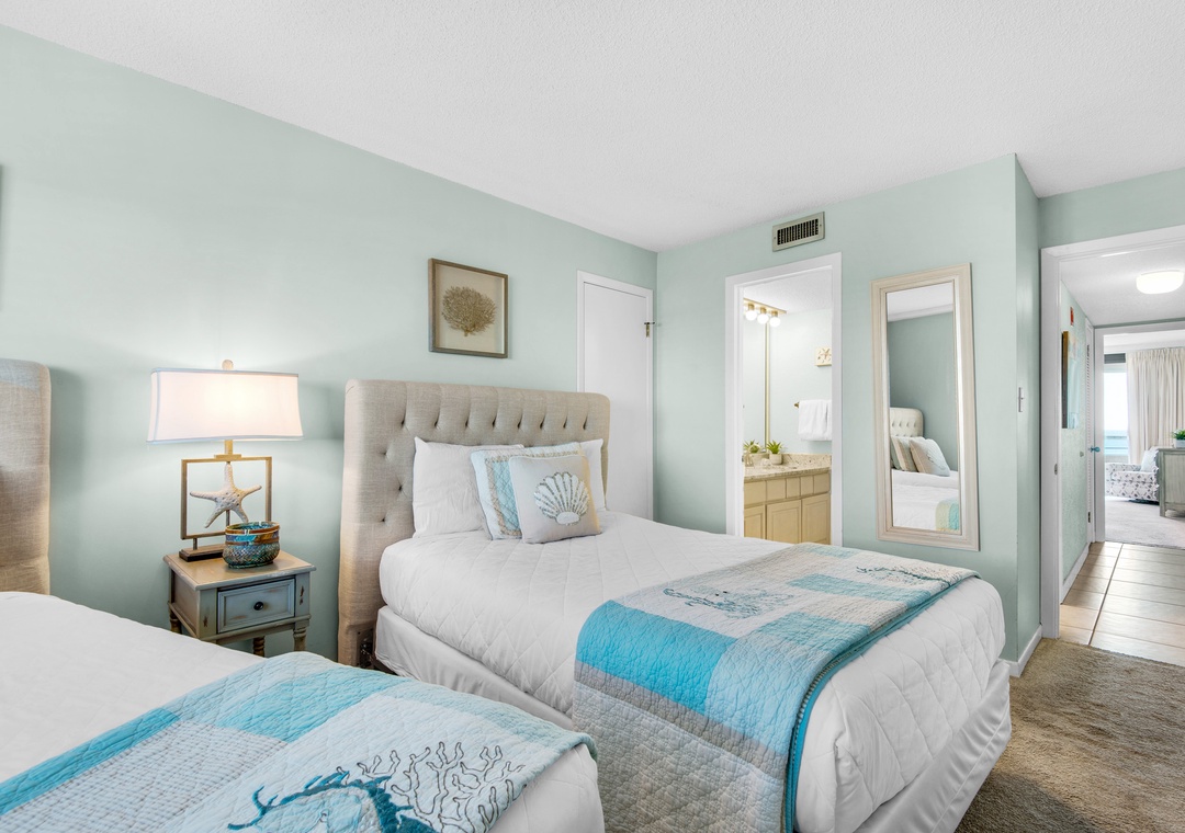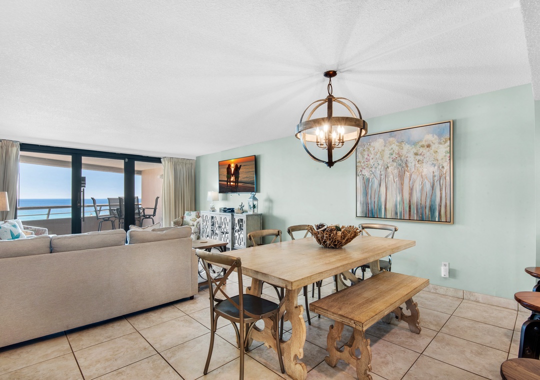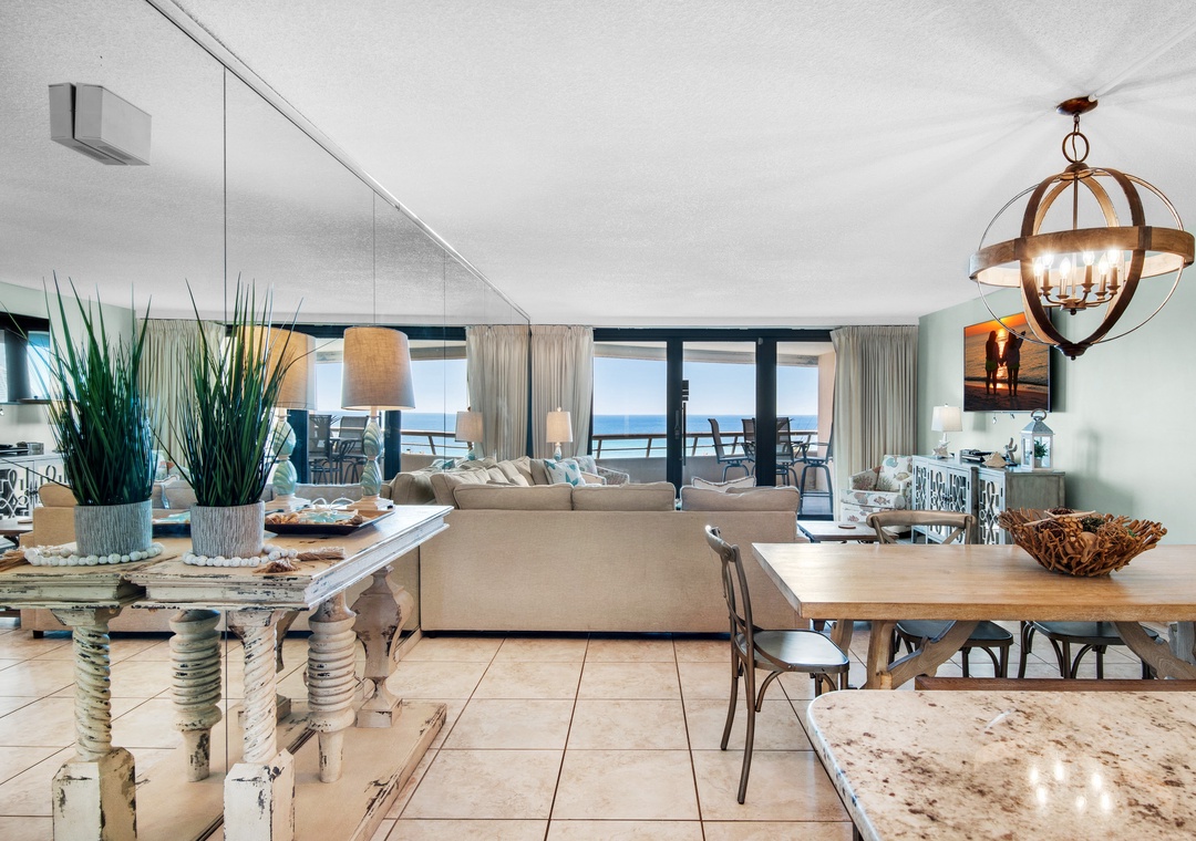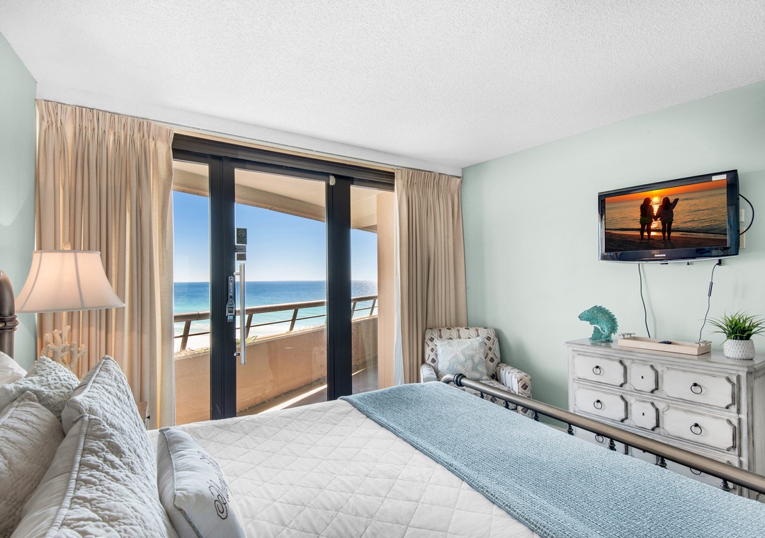 Step into paradise at Edgewater #1007 in Miramar Beach! This 10th-floor condo features 2 bedrooms and 2 bathrooms, offering breathtaking views of the Gulf and the resort. The kitchen, equipped with stainless steel appliances and generous counter space, is a haven for culinary enthusiasts. The master bedroom welcomes you with a luxurious king bed and a private balcony, ensuring a heavenly start to your day. The second bedroom features two full-size beds and its own bathroom for added convenience. With a queen-sized sofa sleeper in the living room, this condo comfortably accommodates up to 8 guests. Take in the stunning Gulf vistas from the expansive balcony, accessible from both the living room and master bedroom. Your dream vacation begins here!