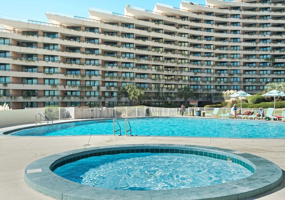 * 2 Expansive Pools (One Seasonally Heated), Waterfall, Hot Tub, Seasonal Tiki Bar and Grill