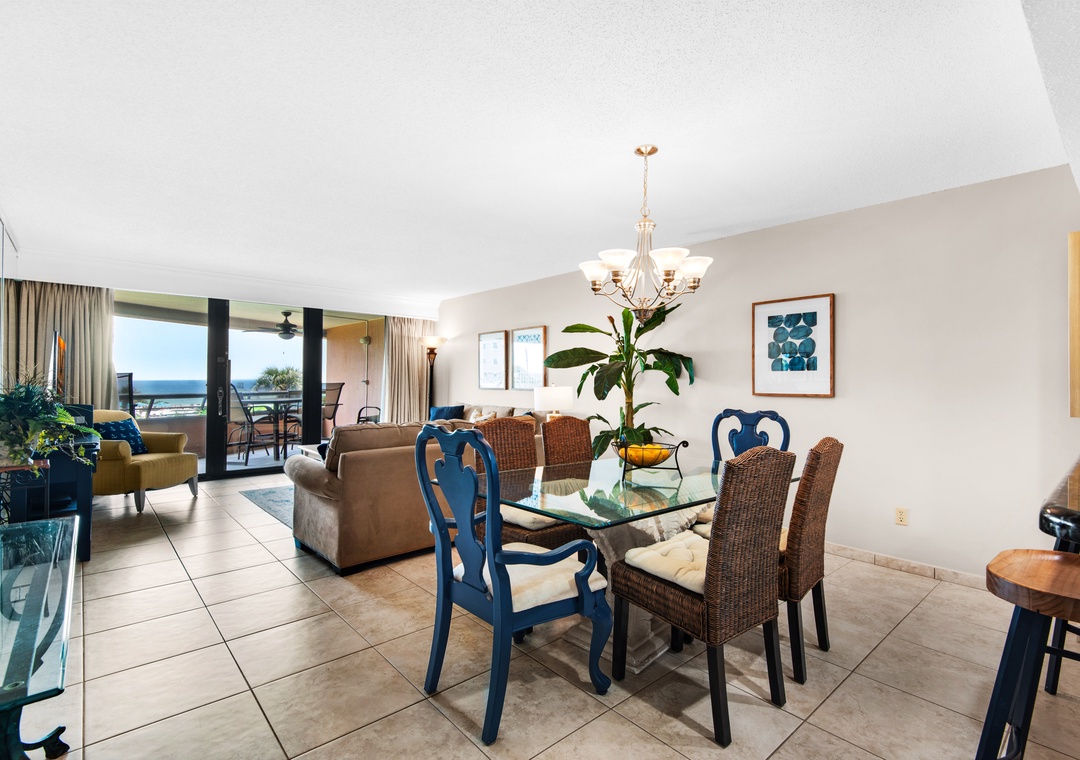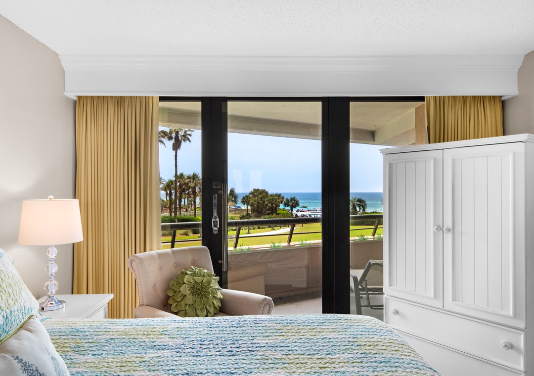 Treat yourself to a getaway at Edgewater #303 in Miramar Beach! This beautiful condo features 2 bedrooms and 2 bathrooms, offering a large balcony with extra outdoor living space while enjoying the breathtaking view of the Emerald Water. The kitchen is equipped with stainless steel appliances and generous counter space, and it has everything you need to prepare your dinner. The master bedroom welcomes you with a luxurious king bed and a private balcony, ensuring a heavenly start to your day. The second bedroom features a twin bunk bed and twin trundle and a queen sofa sleeper in the living room, this condo comfortably accommodates up to 7 guests. Come start making lasting memories at Edgewater #303!