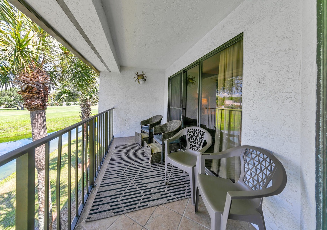 * Balcony overlooking Pond