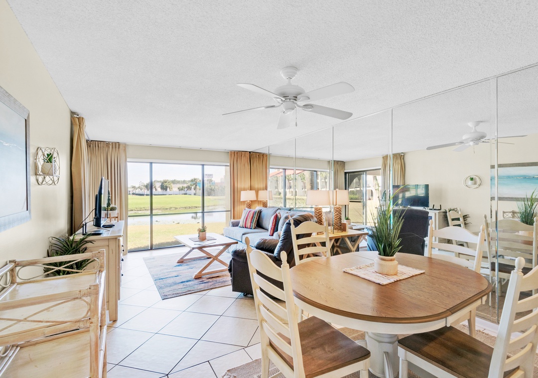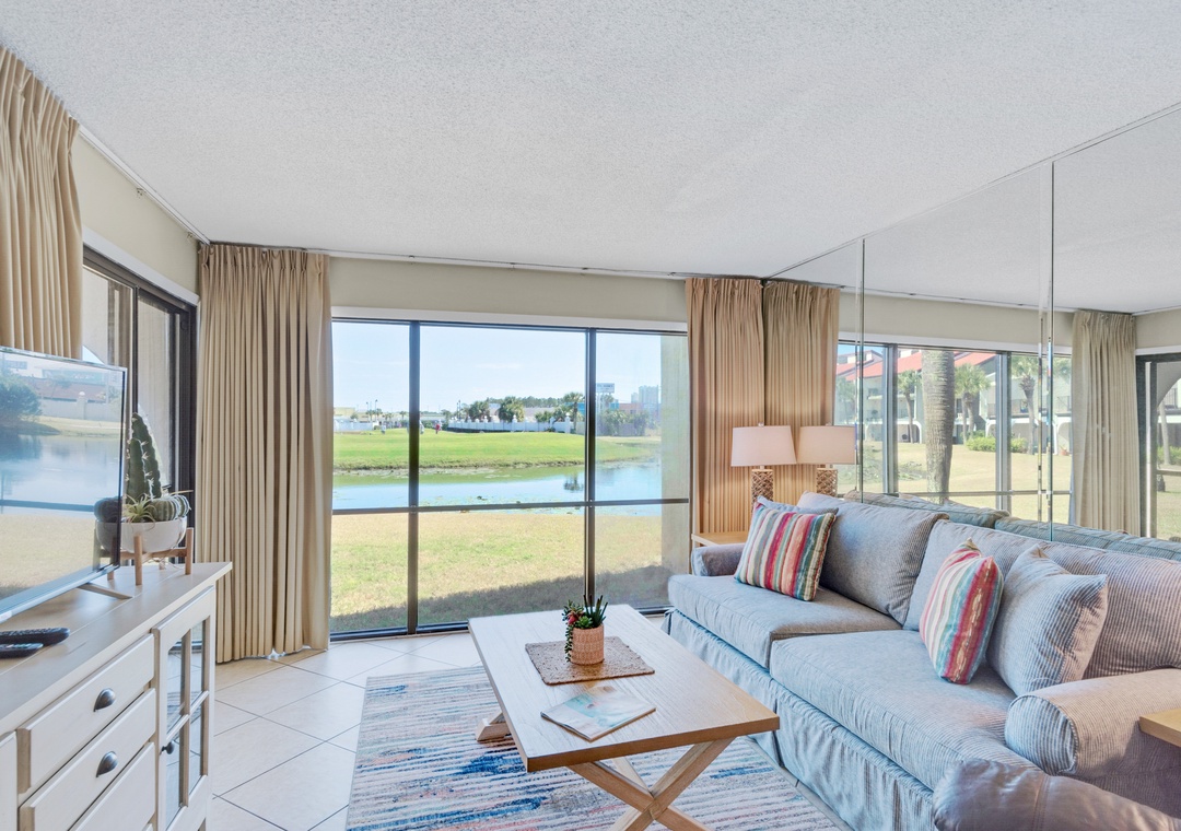 Edgewater Golf Villa 304 is the perfect place to enjoy the beach, play golf, or just relax in this quiet condo in Edgewater Beach and Golf Resort. This 1BR/2BA villa offers a spacious living area, fully equipped kitchen and a balcony with pond views from the 1st floor of a 2-story complex. With two queen beds in the master bedroom, a queen sleeper sofa in the living room, this condo sleeps 6 guests comfortably. Edgewater Golf Villa 304 is set up for a quick getaway with friends or a fun vacation for a small family. Enjoy your favorite movie on the flat screen tv and fast, free Wi-Fi in the comfortable living room with plenty of seating. You'll also be just steps from one of the onsite community pools! Have the vacation of a lifetime at Edgewater Golf Villa 304!