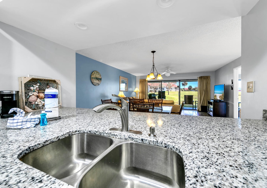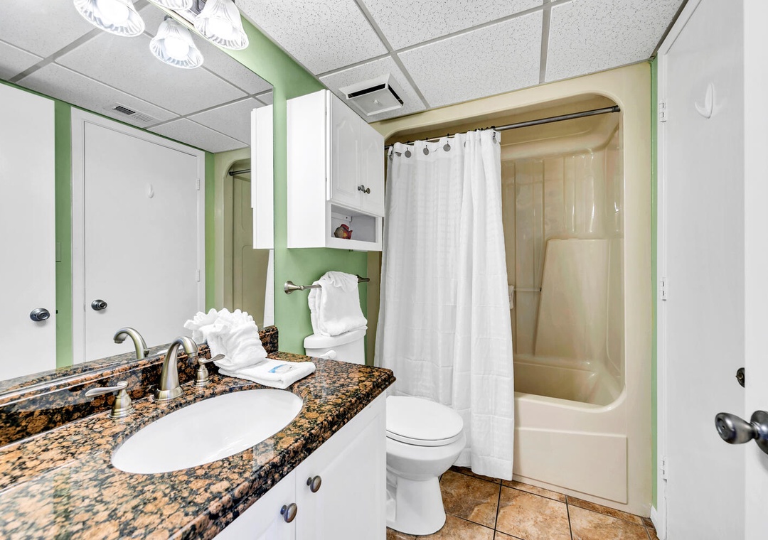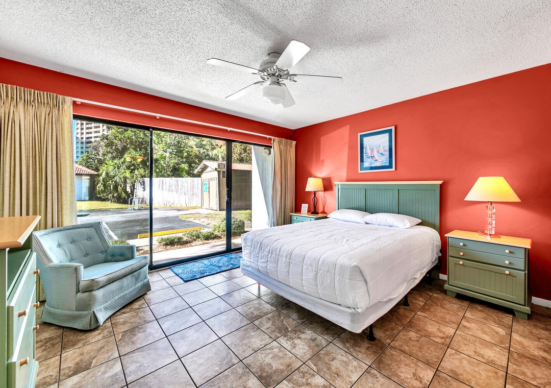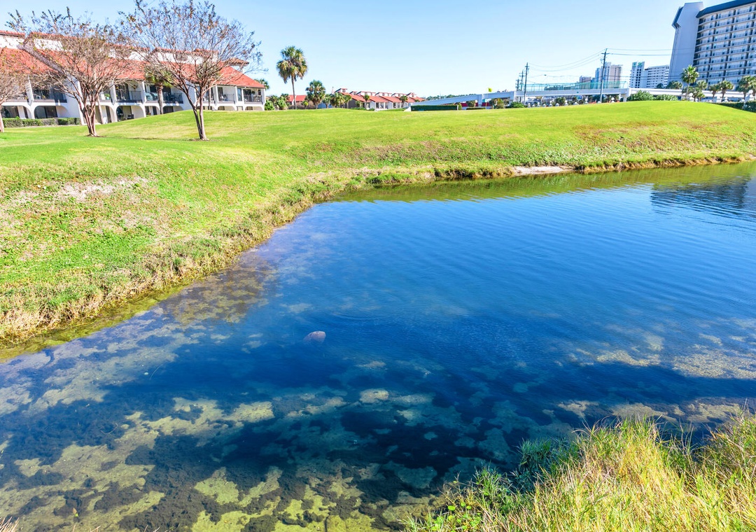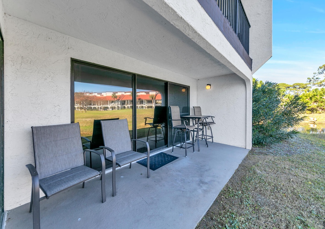 Treat yourself to a getaway at Edgewater Golf Villa 3101 a 3-bedroom 3-bathroom ground-floor condo. This unit stands out with its king master bedroom and main living space featuring sliding glass doors that lead to a serene, covered patio, offering breathtaking views of the golf course's first hole and a scenic pond. In addition, the second-bedroom queen suite features a sliding glass door, providing direct access to the building's front, perfectly situated opposite a heated pool and one of several tram stops dispersed throughout the resort. The third bedroom has a twin over full bunk bed with en suite bathroom and there is a sleeper sofa in the living room, making this unit sleep 8 comfortably. When you’re not catching the sun on the beach, splash around in the community pool or explore all the Edgewater amenities. This unit also has a full-sized washer and dryer for your convenience. Have the vacation of a lifetime at Edgewater Golf Villa 3101!