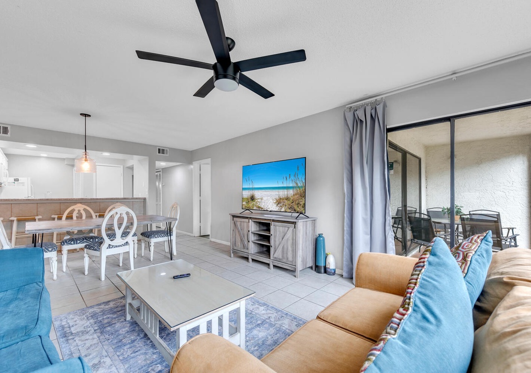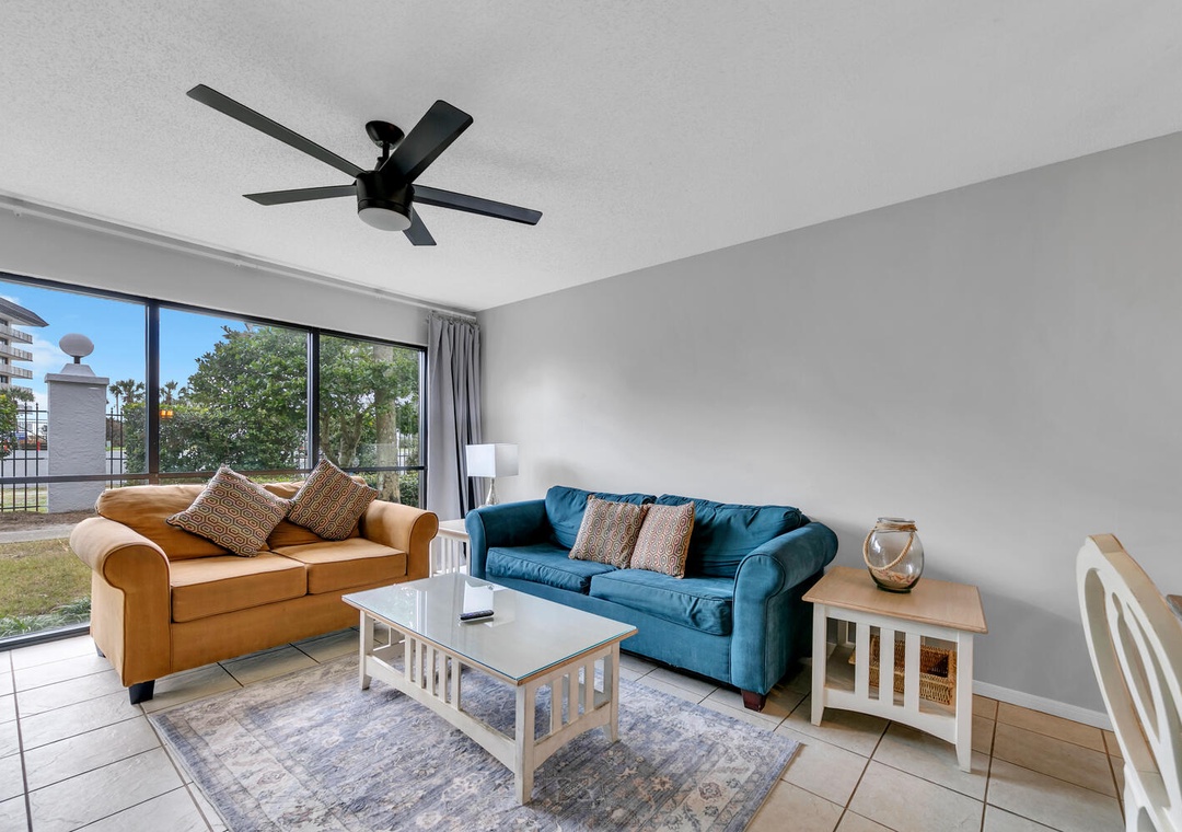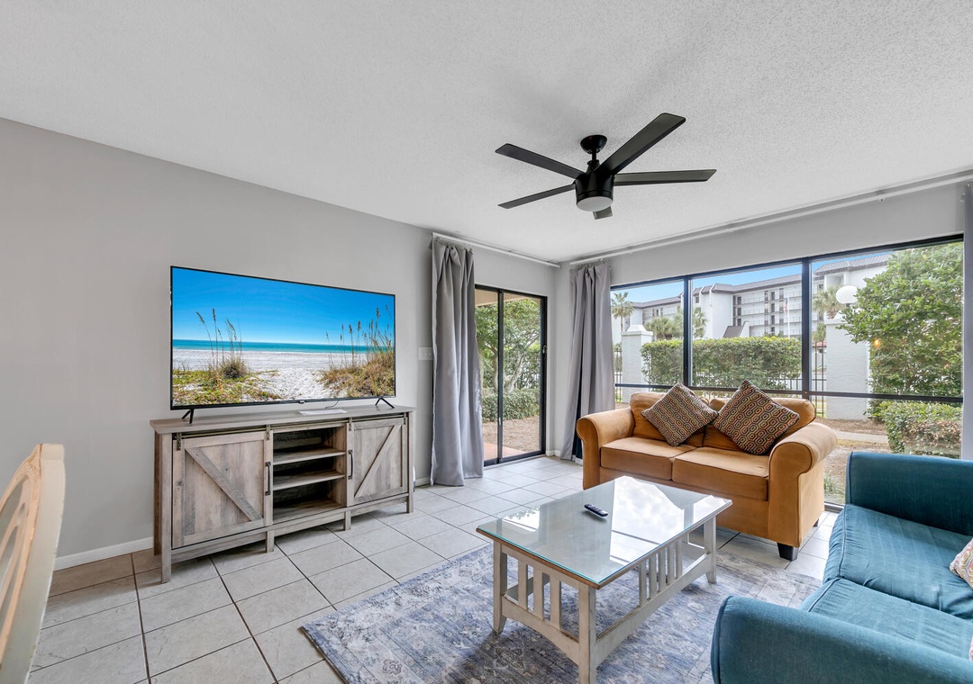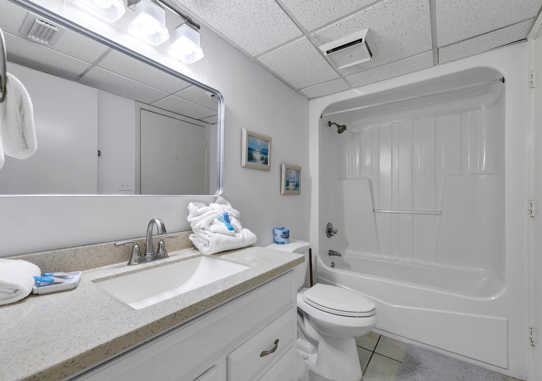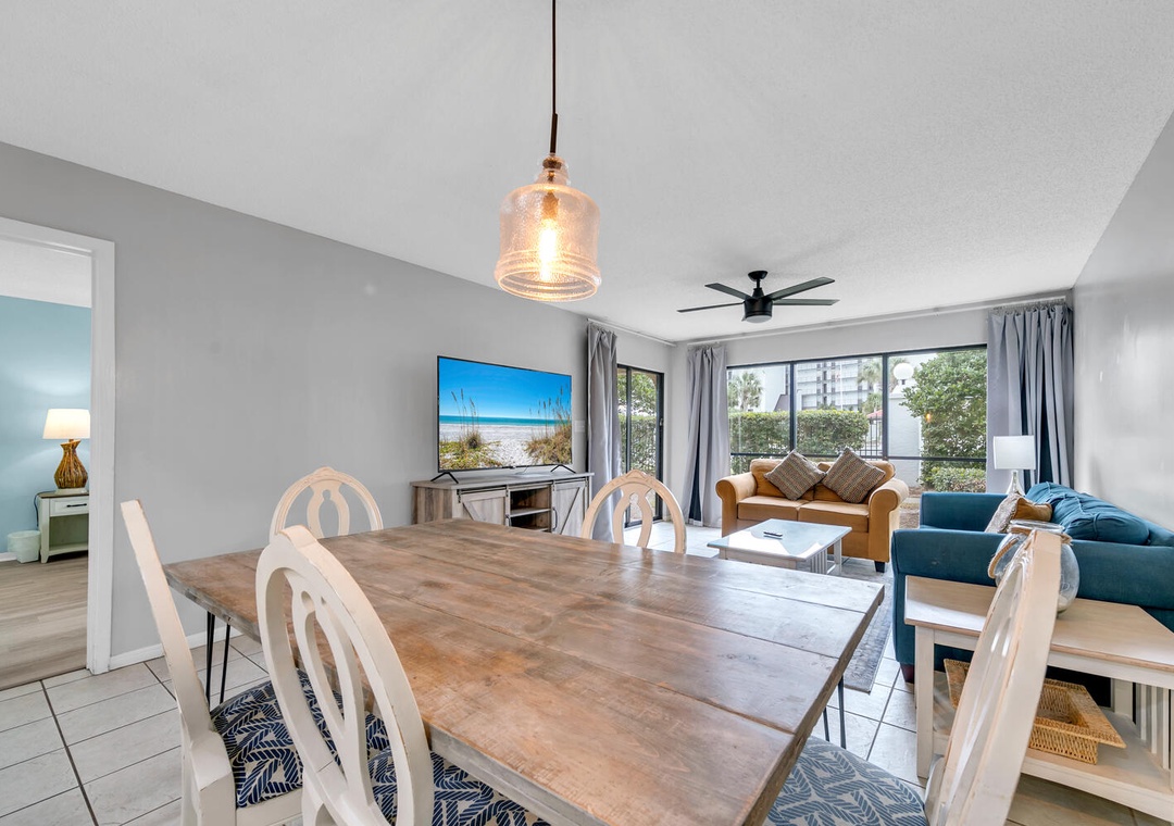Nestled on the ground floor, Edgewater Golf Villa 3204 is your ideal retreat for beach fun, golf, or simply unwinding. This spacious 2-bedroom, 2-bath villa features new flooring throughout, a roomy living area, a fully equipped kitchen, and a private patio. The master bedroom boasts a king-sized bed, while the guest room offers a queen bed,while the guest room offers a queen bed, a full bed, and a sleeper sofa in the living room, comfortably accommodating up to 8 guests. When you're not soaking up the sun on the beach, take a dip in the community pool or explore the resort's many amenities aboard the tram! For added convenience, the villa includes a full-sized washer and dryer. Make unforgettable memories during your stay at Edgewater Golf Villa 3204!