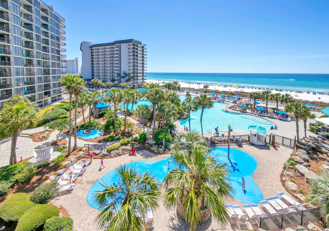You won't want to leave Edgewater Beach and Golf Resort in Panama City Beach! The resort is so extensive that you won't ever have to leave once you arrive and golf cart shuttles are provided to take you where you would like. With half a mile of private beach, eleven pools, four hot tubs, and a fabulous 11,500 s.f. Polynesian-style, free-form lagoon pool with waterfalls and fiber optic lighting, you can lounge to your heart's content! Wander past the six reflecting pools to wind down your day. Beach service is available for a fee. You'll also find restaurants galore available like Ocean's Bar and Grill for gulf-front dining, Starbucks coffee shop, Paradise Pizza, Blenders for frozen drinks on the Lagoon Pool Deck, and Edgie's Corner Market for ice cream or coffee. Other restaurants are within walking distance.